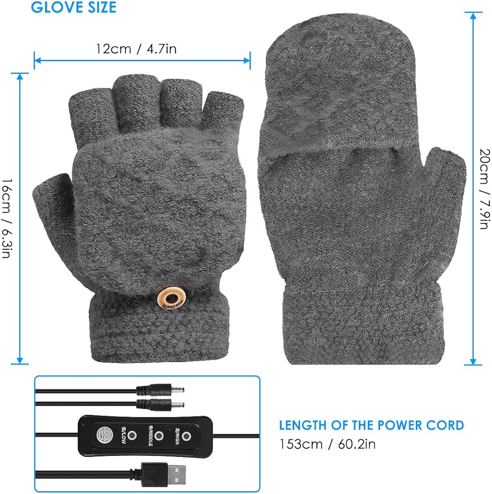 3 TEMPERATURE LEVELS - The heating gloves is USB 5V powered, safety and easy to operate. Simply plug it onto USB port of PC, power bank, or other 5V power sources, convenient and practical. 3 temperature level adjustable: High heat mode: 47~50°C; Middle heat mod: 43~45°C; Low heat mode: 40~43°C.