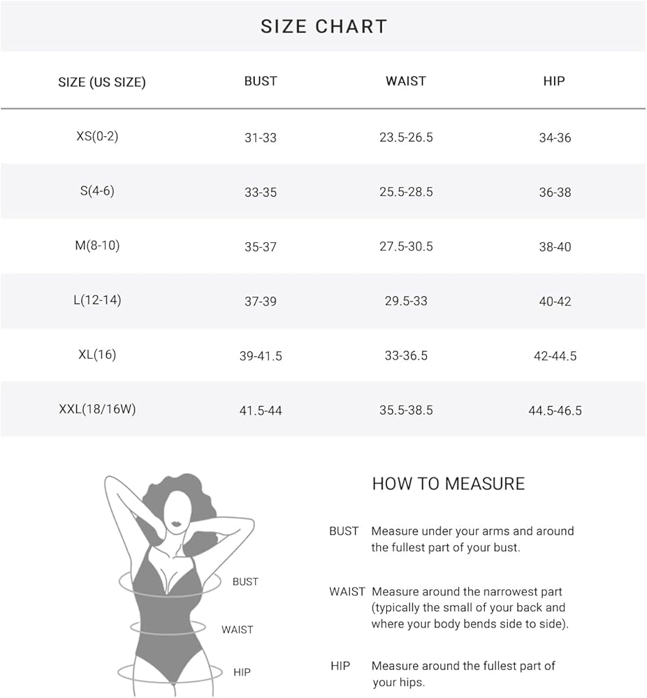 To achieve the perfect fit, please first take accurate measurements and then consult our size chart, which has been carefully crafted to suit our swimwear designs. Size: S (US 4-6), M (US 8-10), L (US 12-14), XL (US 16), XXL (US 18).