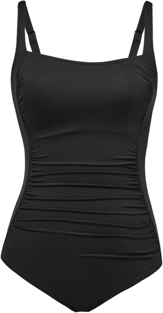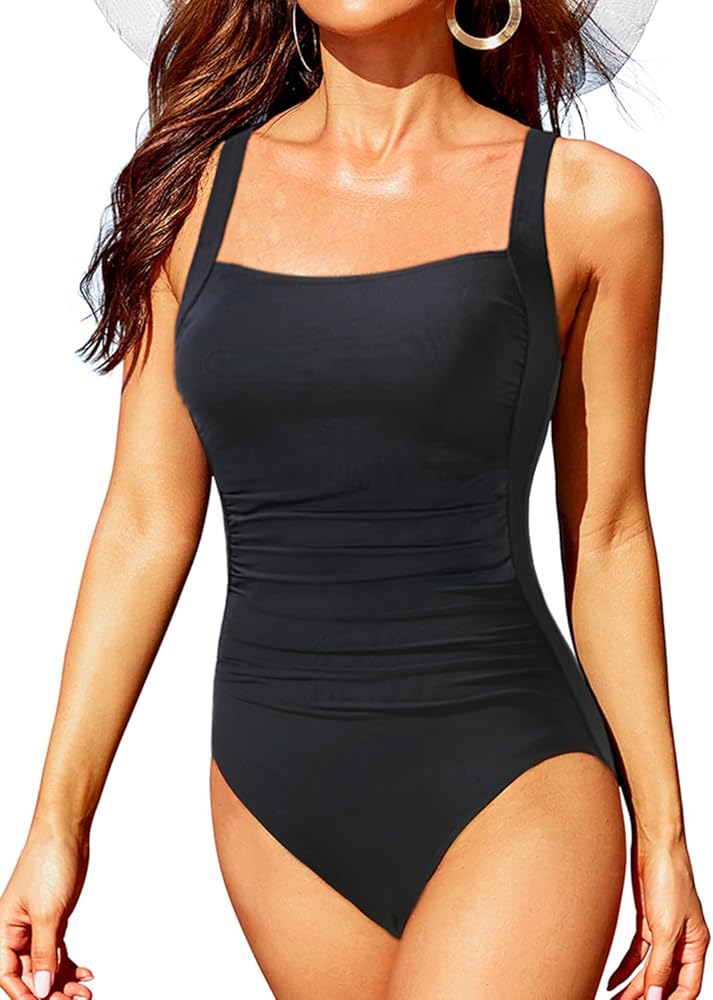 Features: This one piece swimsuit women features a ruched design, low back, and square neck, making this tummy control swimwear for women look vintage yet flattering. The modest bottom shows off your good shape, while the low back is very cute.