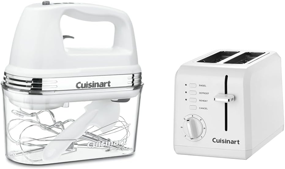 The Cuisinart Power Advantage 3-Speed Hand Mixer puts 200 watts into the palm of your hand for mixing, blending, whipping, folding, and beating ingredients into mealtime masterpieces. Three ideal speed settings mix light to heavy, starting up slow and splatter-free with the SmoothStart feature, while the center-mounted cord moves with you, keeping tangles at bay and the cord out of the way so you can mix without worry. And when you need to put the mixer down, there is a convenient heel that lets you rest it upright on the countertop.