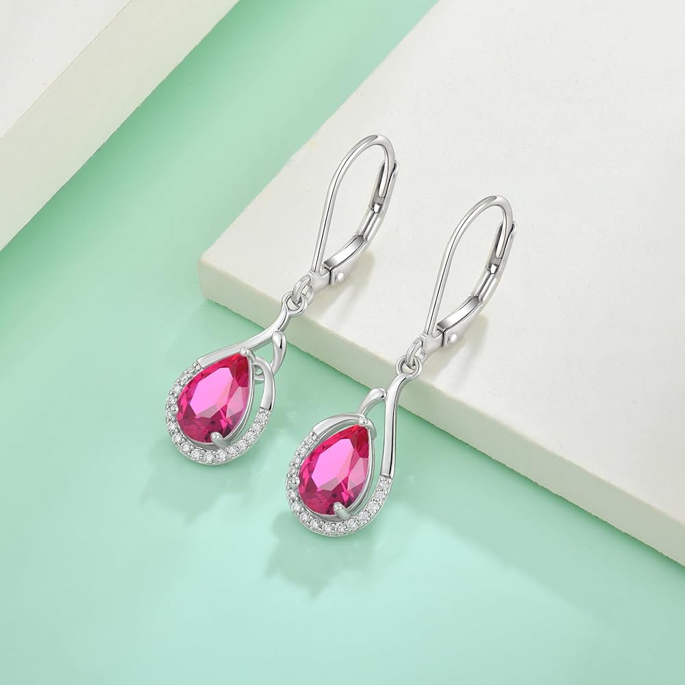 Material: The teardrop leverback earrings are sterling silver inlaid with created green opal and cubic zirconia. They are bright polished with rhodium plating, can be worn longer, and brighter