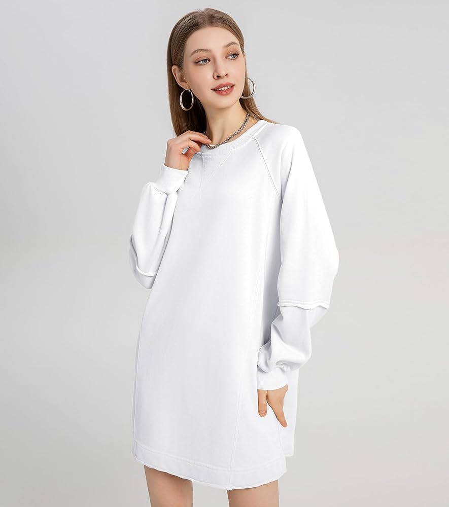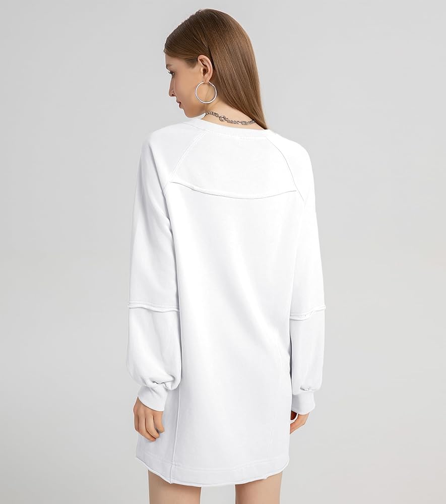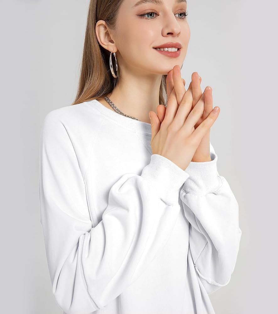 Inside-out seams on sleeves & back, cozy brushed fleece, relaxed raglan neck for a sporty yet lived-in vibe