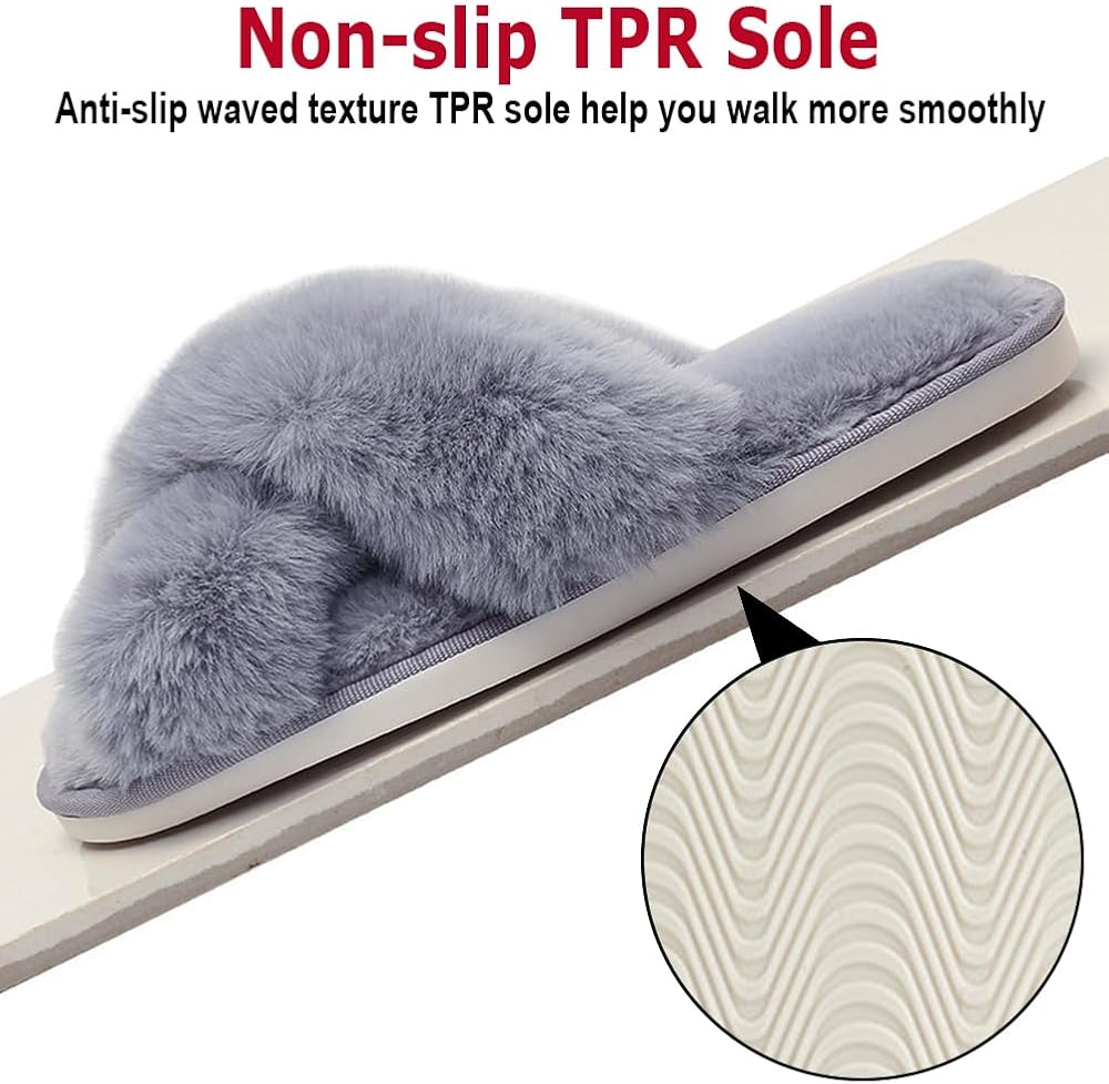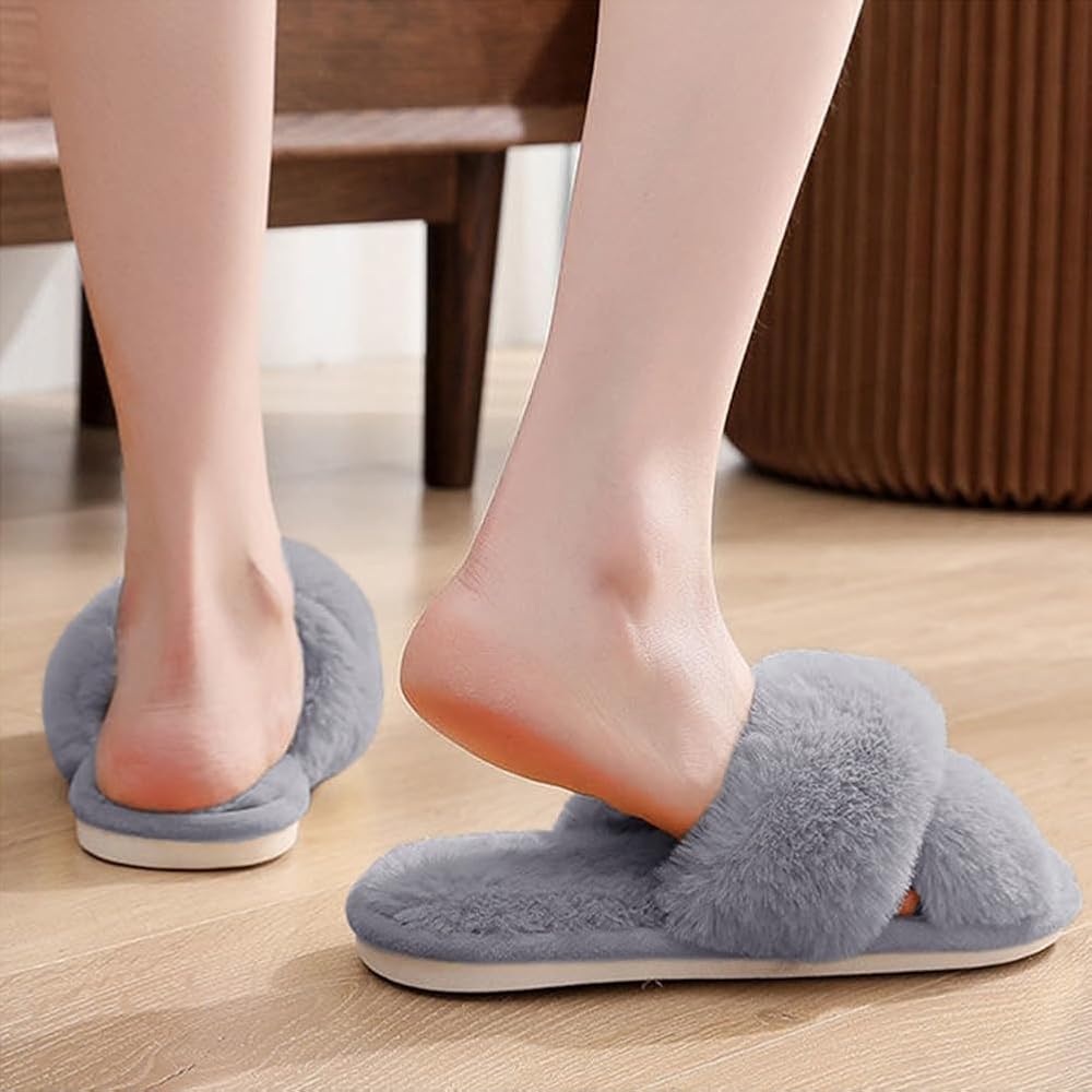 Multi-function: You can match the fuzzy cross band open-toed slippers with dress, T-shirts, jeans, shorts, any casual wear, they also can be wear in all seasons. Suitable for pajamas party, date, family gatherings, travel or other special occasions, both indoor & outdoor use.