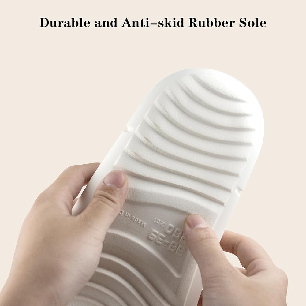 Non-slip Thick Sole: Each slipper's sole is fitted with 1inch thickness high-elastic memory foam, especially the toes and heels, offer a steady elastic and comfortable feet feeling! Anti-skid rubber sole with shock absorbing EVA foam balances comfort and traction, ensures these fuzzy home shoes both indoor or outdoor usage.
