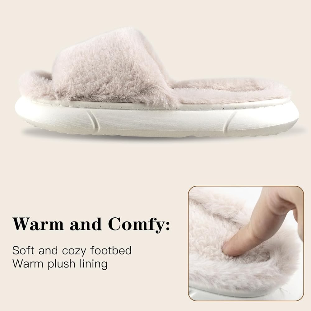 The lightweight and open toe design of these fuzzy slippers create a perfect fusion of comfort and breathability.