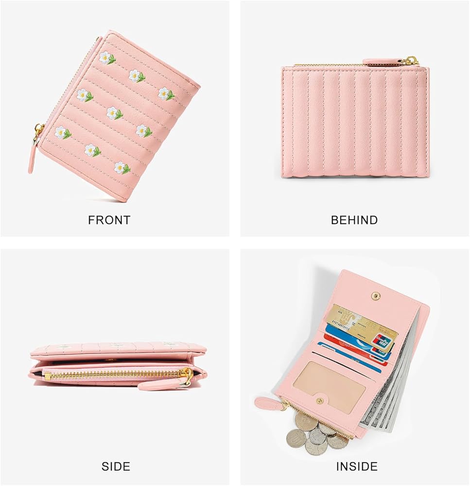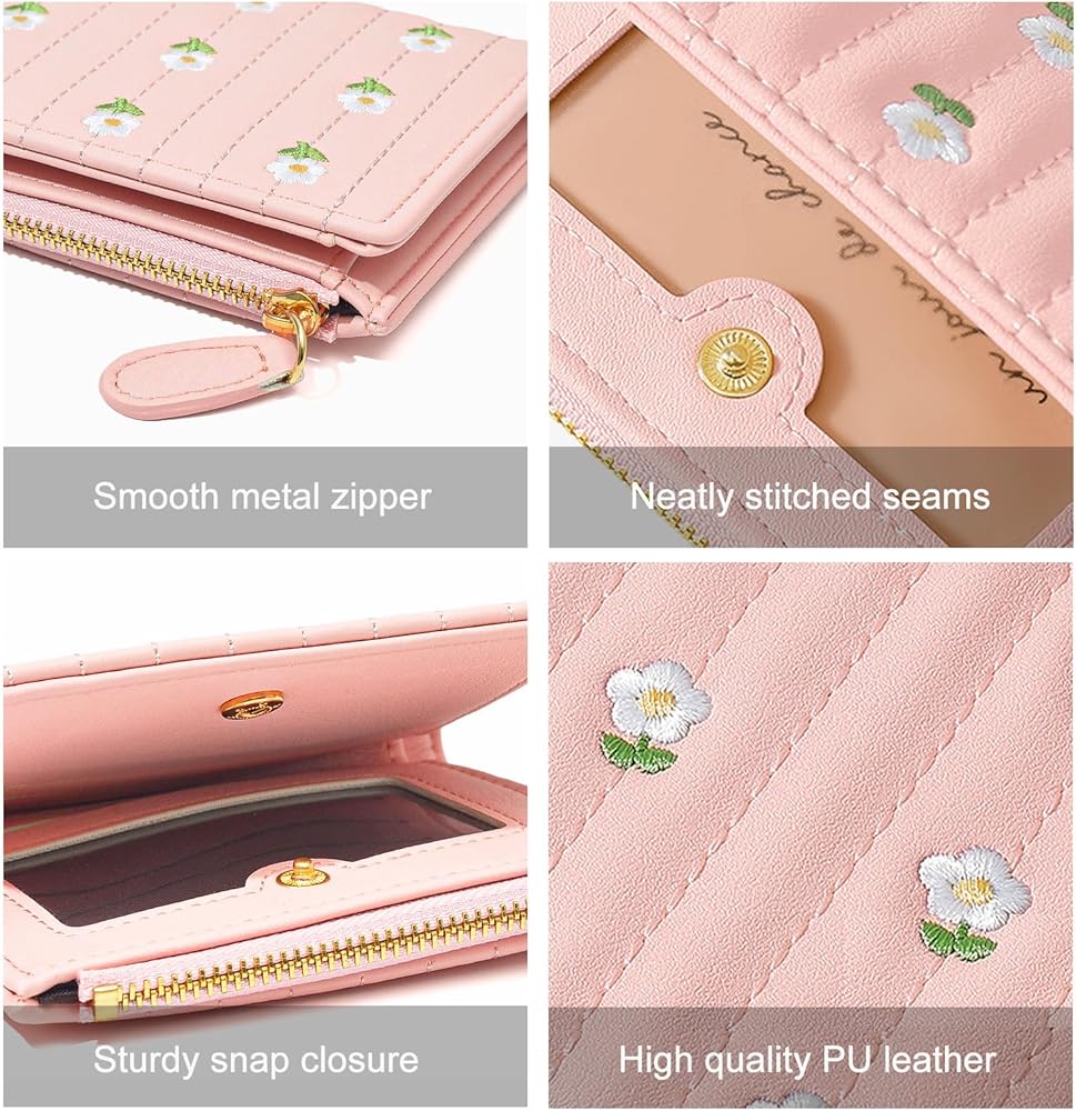 Trend Design: This bifold wallet women features a delicate embroidered floral pattern, neatly stitched seams and a sturdy snap closure. The flower styling design is both fresh and sweet, making it the perfect accessory for girls and women