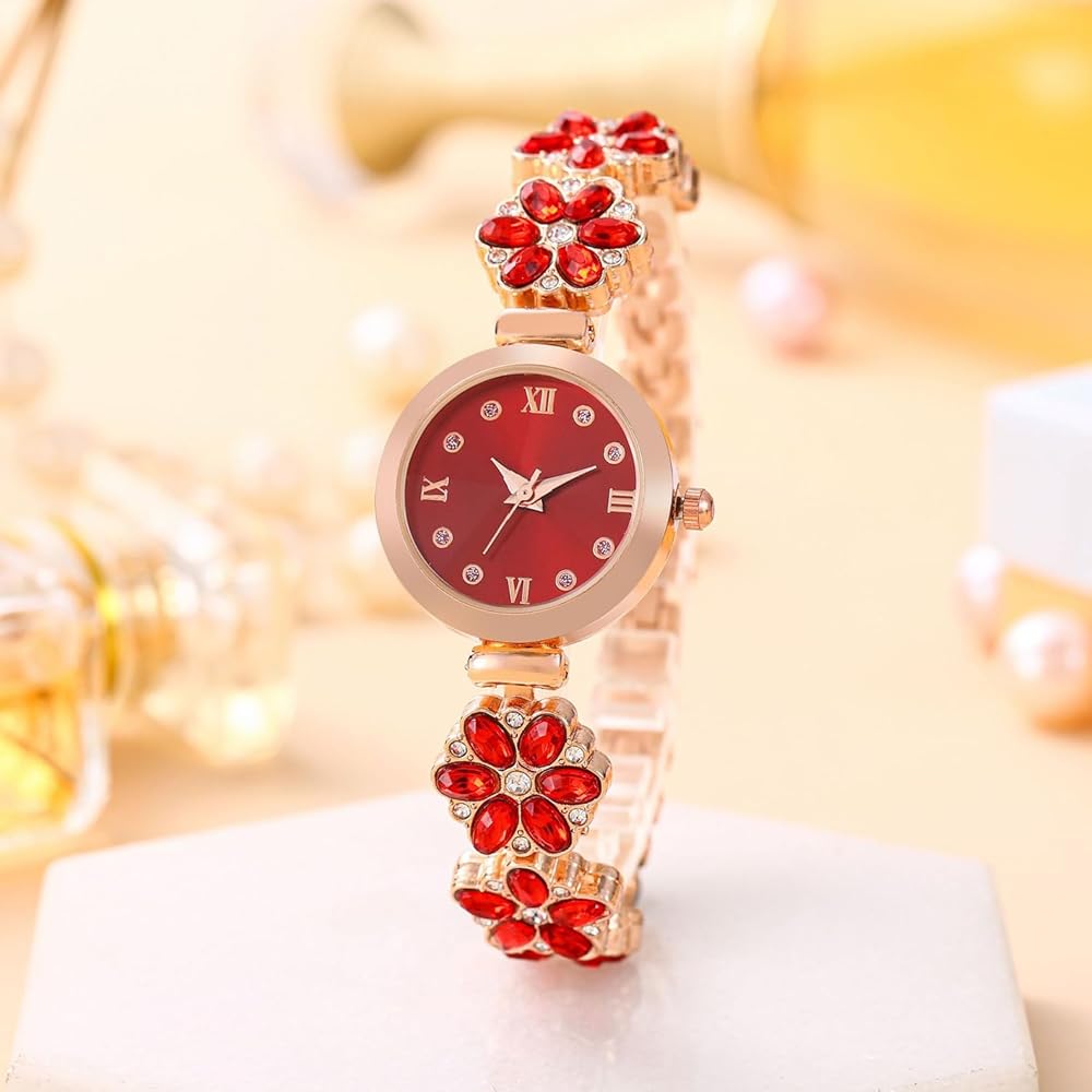 【Flower-shaped watch band】: Fashion flower-shaped watch band design, exquisite small dial with texture, simple and exquisite dazzling, elaborate fashion and elegant design, let your life more bright.