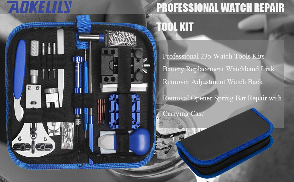 Aokelily Watch Repair Kit, Professional 235PCS Watch Tools Kits Battery Replacement Watchband Link Remover Adjustment Watch Back Removal Opener with Carrying Case