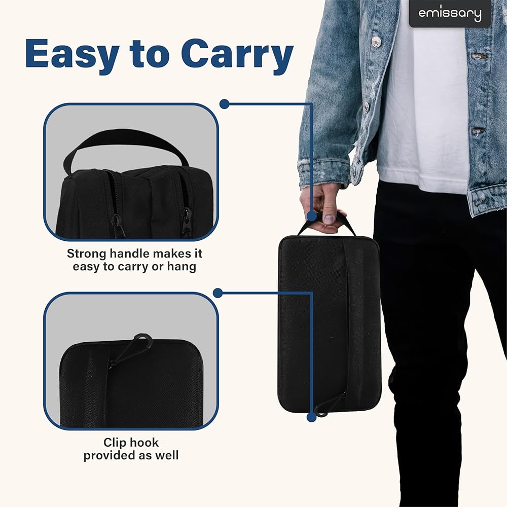 emissary Travel Toiletry Bag for Men, Water Resistant Travel Bathroom Bag Men's Shaving Kit, Dopp Kit for Men, Waterproof Toiletry Bag, Shaving Bag, Hygiene Bag, Mens Toiletry Travel Bag - Black