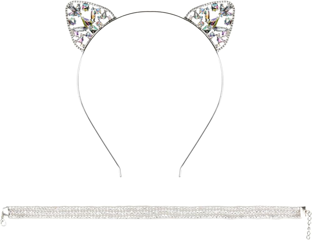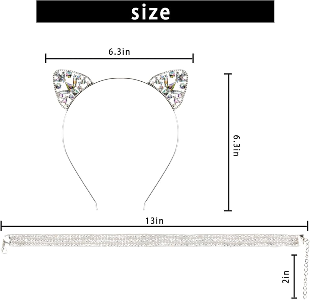 - Package include: silver crystal cat ear headband x1, silver necklace x1.