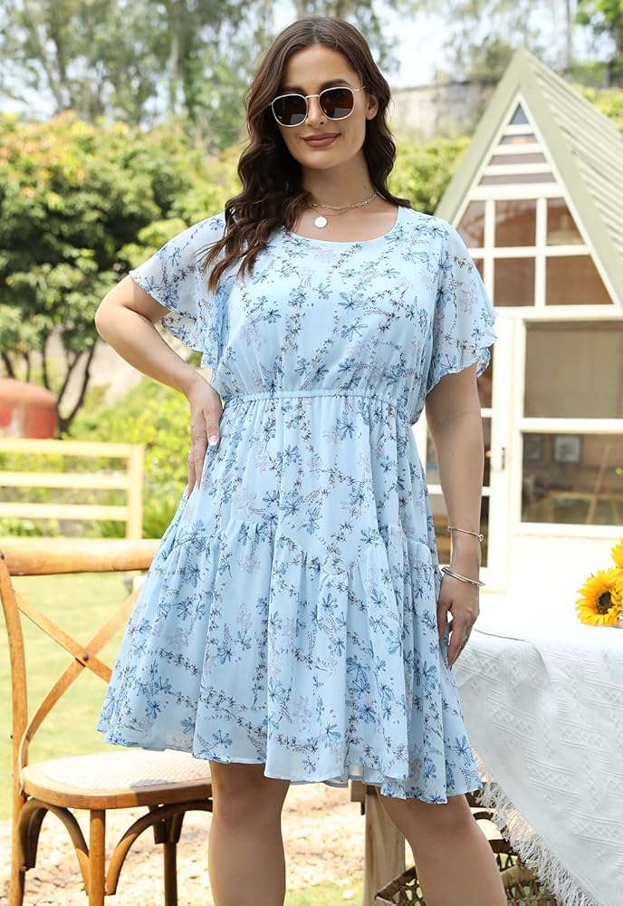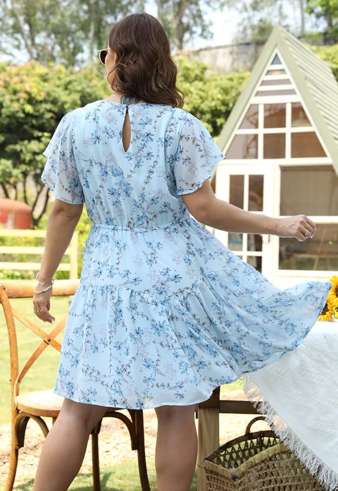 Features: The skater midi dress is stretchy empire waistline,and scoop neckline provides good chest coverage. The cut is very flattering and cute flutter sleeves and make the ruffle fall perfectly which makes the arms flowy. This boho swing summer dress is tiered layer design, and the print is gorgeous and vivid. It also has a fabulous drape. Lined and back neck button closure.