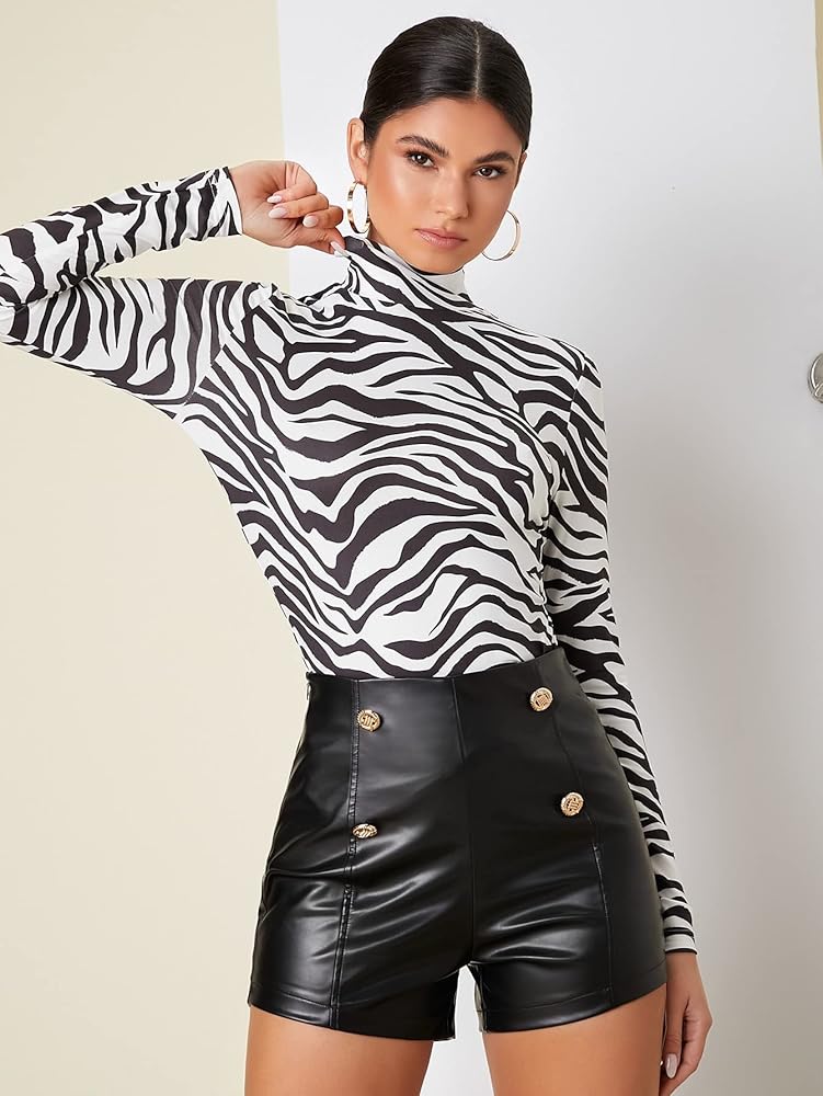 Feature: Zebra Striped, Print, High Neck, Long Sleeve, Slim Fit, Stretch.