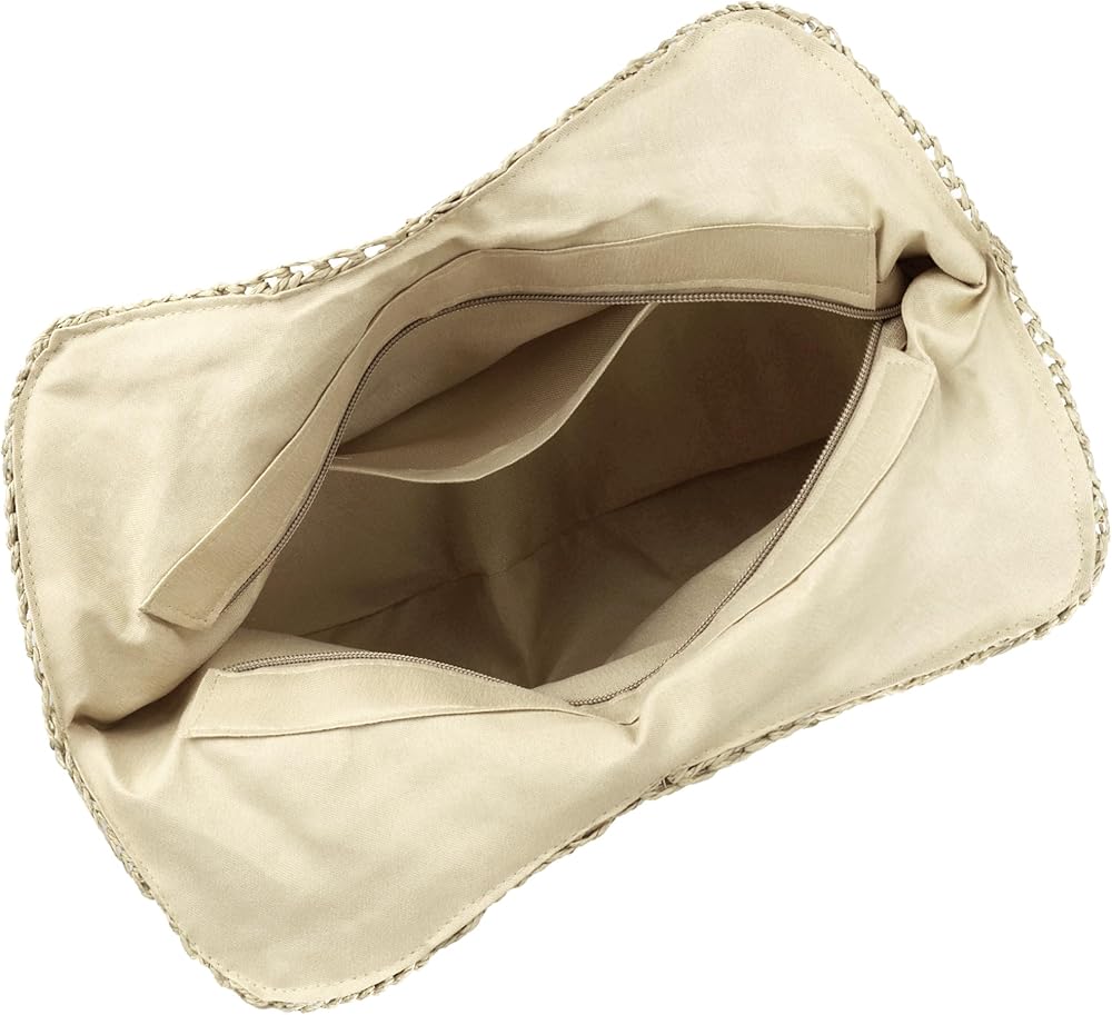 Structure: This woven tote bag includes a spacious main compartment and an interior slip pocket. It fits a large amount of items such as cell phone, wallet, sunglasses, umbrella, cosmetics and so on