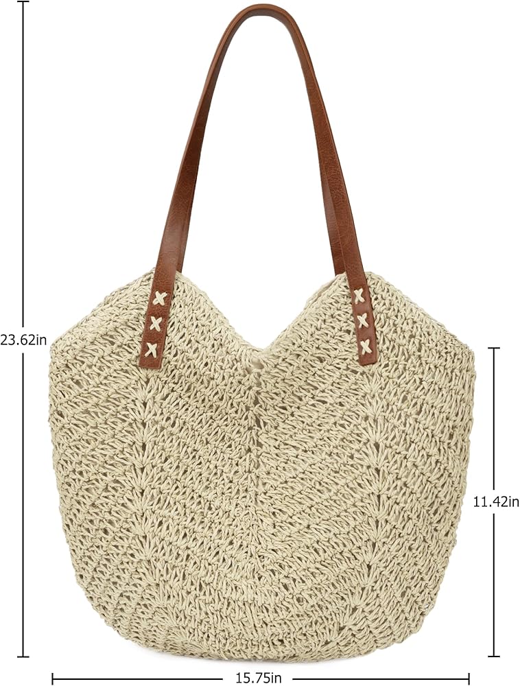 Large Size: The dimensions of straw handbags for summer are around 15.75" L x 11.42" H; Handle drop approx 11.81". Unique shape design make straw tote bag look more fashion and elegant