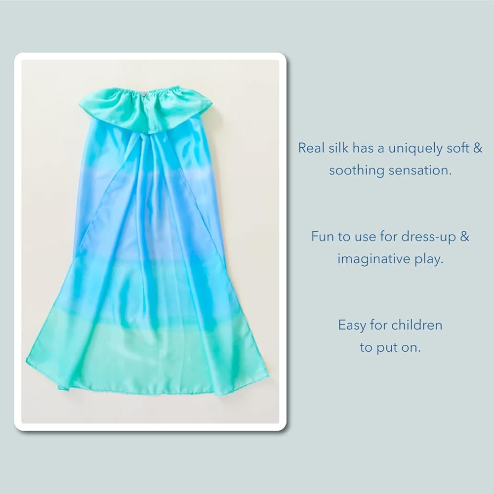 - Sea Capes are made from 100% pure silk. Children love the uniquely soft and soothing sensory experience of touching and playing with authentic silk.