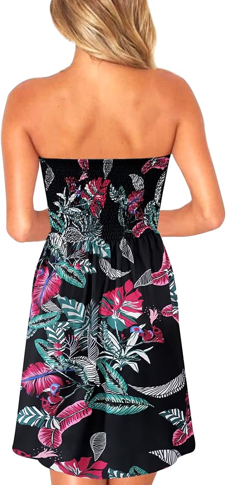 Feature:bandeau Design--it is sexy summer dress for women .bohemian floral printed in swim cover up dress--your will never out of fashion,Flowy Swing Hem ,Elasticated breast, Knee length coverups for bathing suits