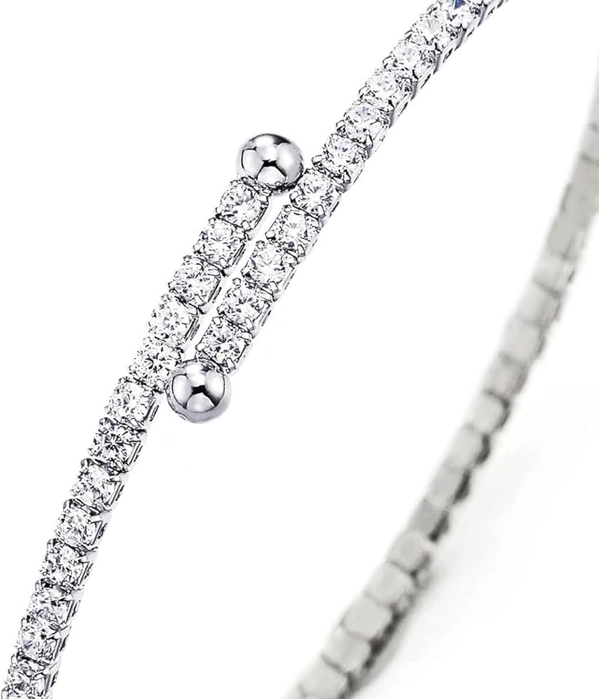 COOLSTEELANDBEYOND Womens Thin Open Cuff Bangle Bracelet with Cubic Zirconia, Adjustable