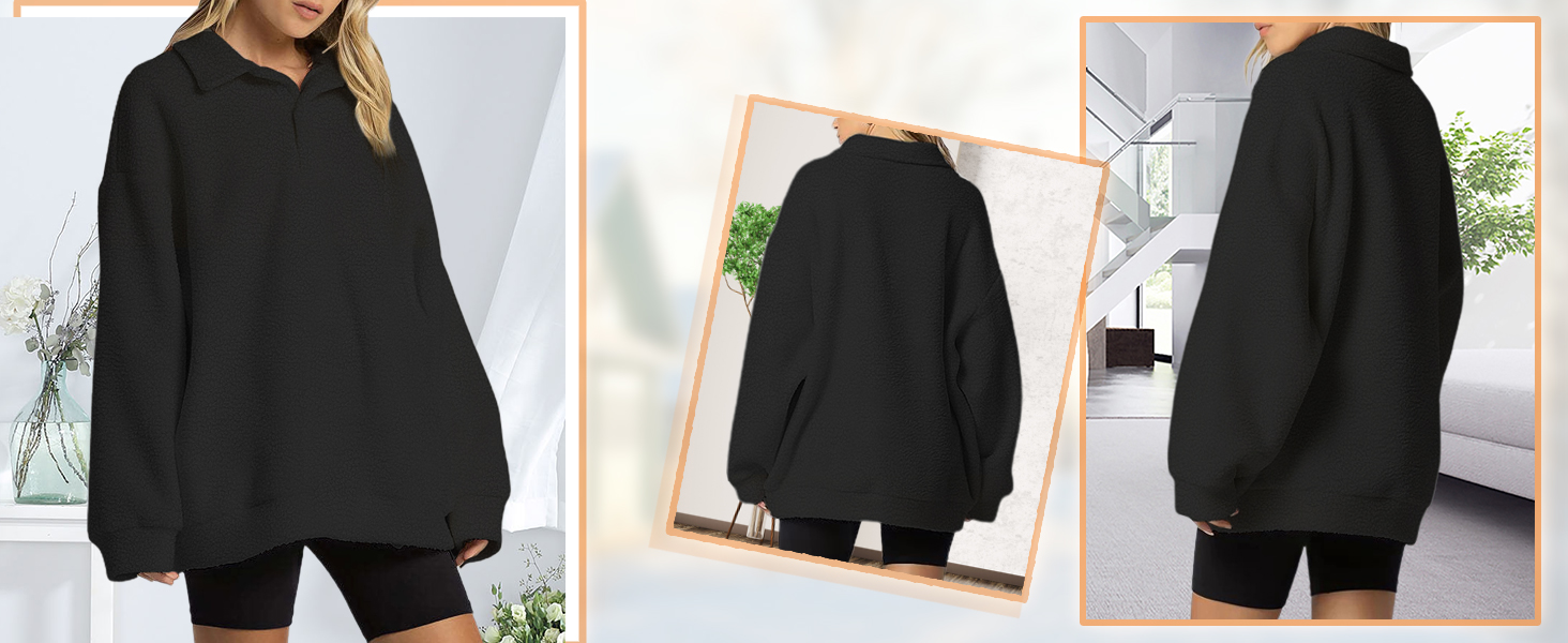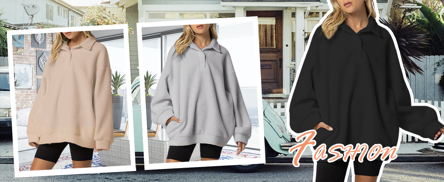 Material: This fuzzy Sherpa polo sweatshirt for women is made of high quality polyester fabric that can provide you a comfortable and pleasing wearing experience, it's super warm and soft enough, breathable, cozy, comfortable.