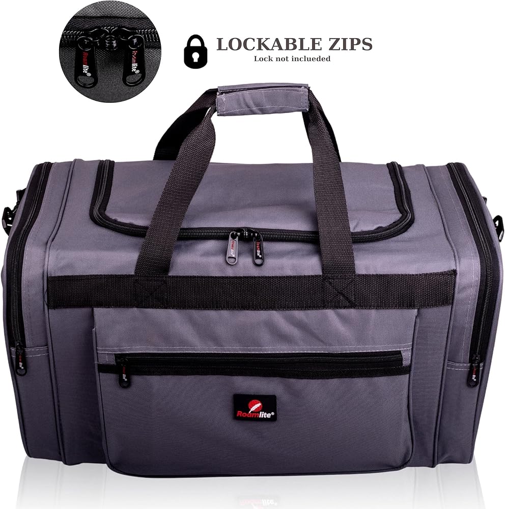 ALL OF THE ESSENTIAL FEATURES NEEDED - Lockable zips, Double vel-cro together carry handles, long adjustable removable shoulder strap, can be put flat into suitcase as an extra hold all