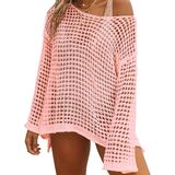 STYLE AND COMFORT COMBINED: This hollow out beach cover up features long sleeve, making it an ideal swimwear cover-up for a day at the beach. The wide neckline can be casual wear or off the shoulder. Side slits add more sexiness.