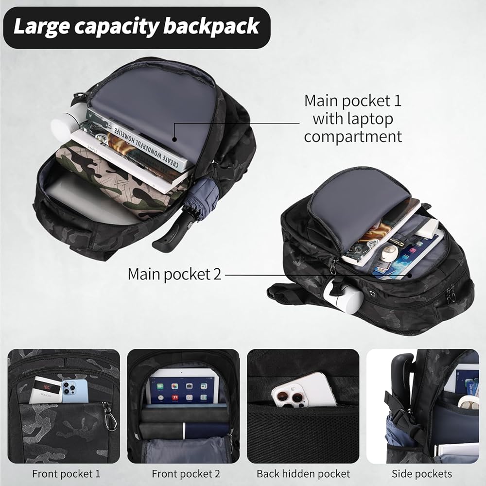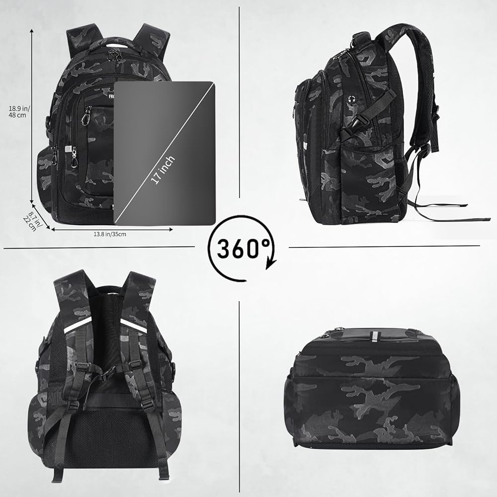 ✅✅【Practical And Fashionable Choice】- This backpack is a practical and stylish choice that suits both teenage schoolboys and adult men. with its dimensions of 18.9*13.8*8.7 inches (48*35*22 cm), it offers ample space for carrying daily & office essentials, including a 17-inch laptop, making it perfect for work, school, sport, flight or travel.