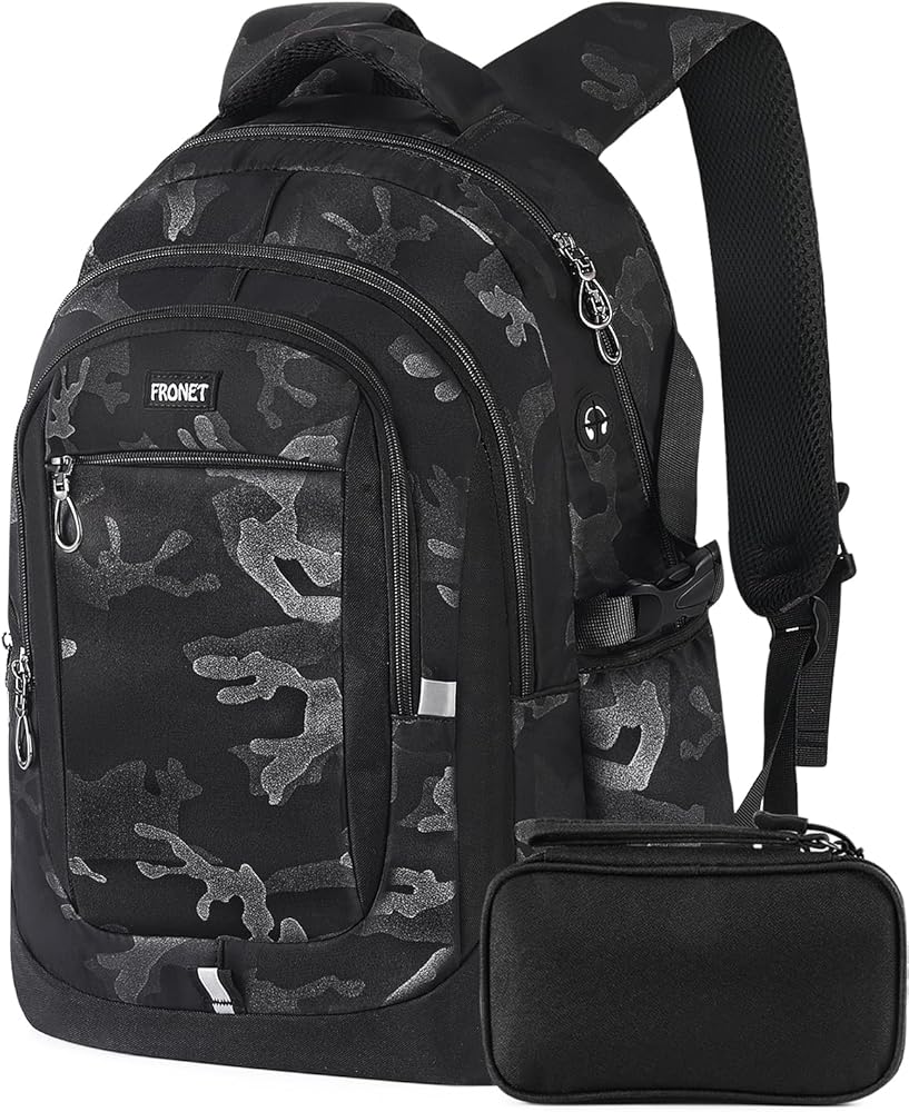 Laptop Backpack, Teenage Boys Men's Backpack Daypack 17-inch Computer Bags Work Business Travel Large Bookbag for Middle High School College Student, USB Charging Water Resistant Anti-Theft, Black
