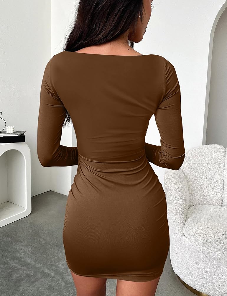 Features: The bodycon mini dress feature long sleeves with thumb holes, square neck, above knee length, cute little black dress, semi formal dress, body con dress hugs your curves