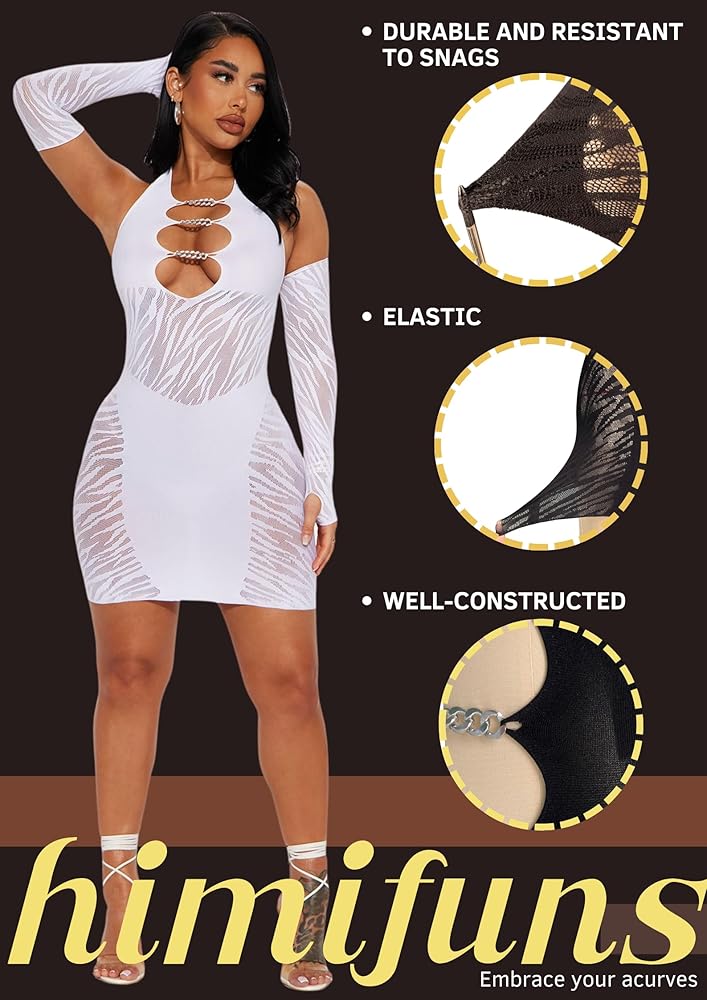 UNIQUE DESIGN: Slip into this sleek V-neck Cami Dress adorned with shimmering chains, a detail that guarantees you'll be the dazzling center of attention at any evening event. The fishnet dress pattern and Sexy Cut Out detailing ensure a head-turning club dress appeal.