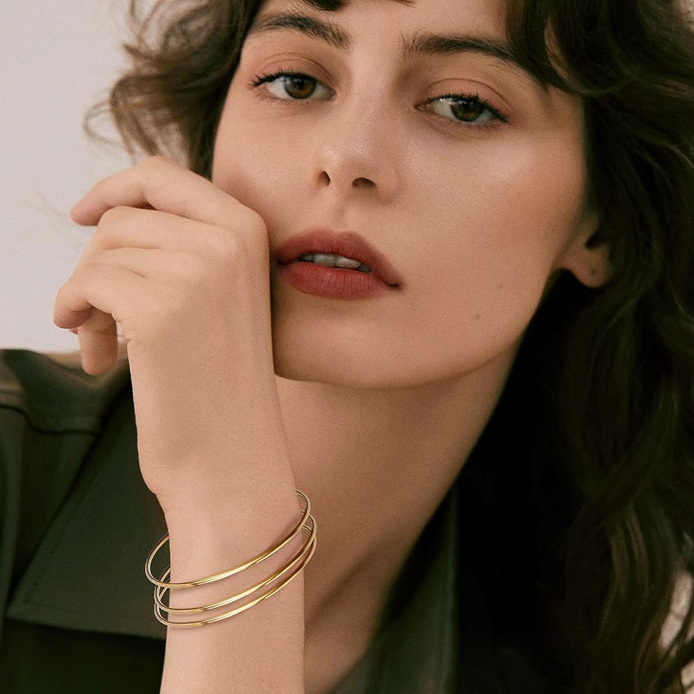💫PERFECT GIFT: Simple and elegant gold bangle bracelets must be a wonderful gift for you, Wife, Mom, or daughter and lover on Birthday, Anniversary, Holidays, Graduation, Christmas, Valentine's Day, Mother's Day and so on. Makes a sentimental surprise for your significant ones.