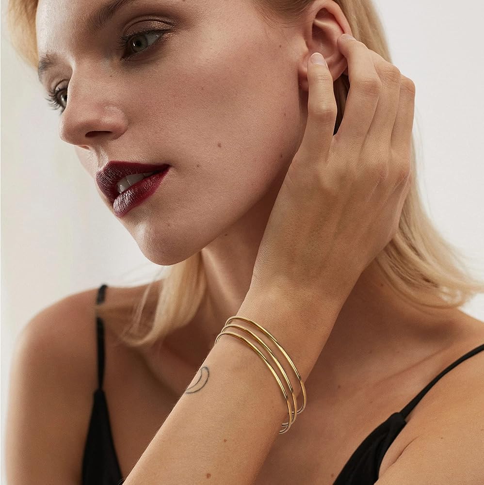 💫VERSATILITY: You can wear these thin bangle bracelets alone for a minimalist look or stack it together with other bracelet. Simple yet unique design enhances charm while offering a stylish look. These slim and elegant gold bracelets are perfect for everyday simple luxury.