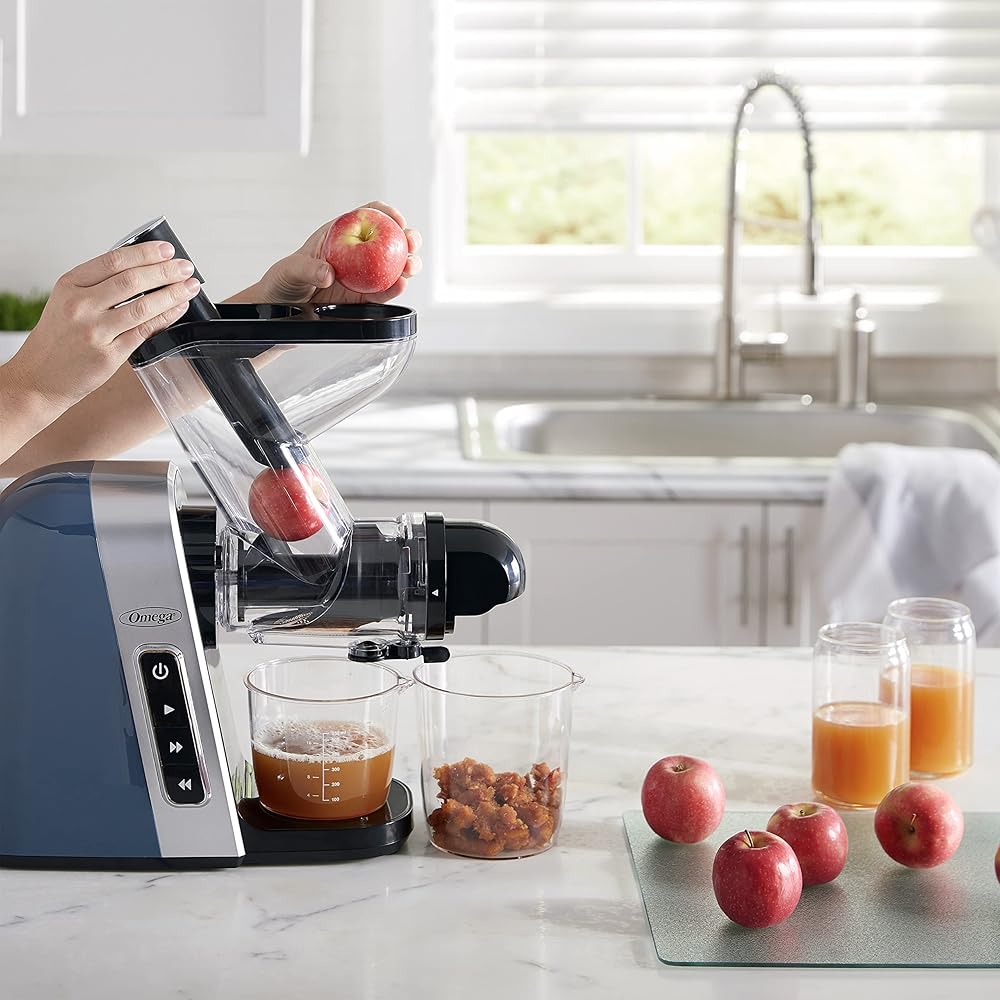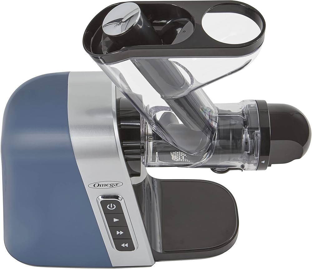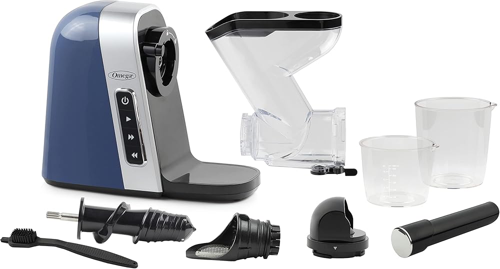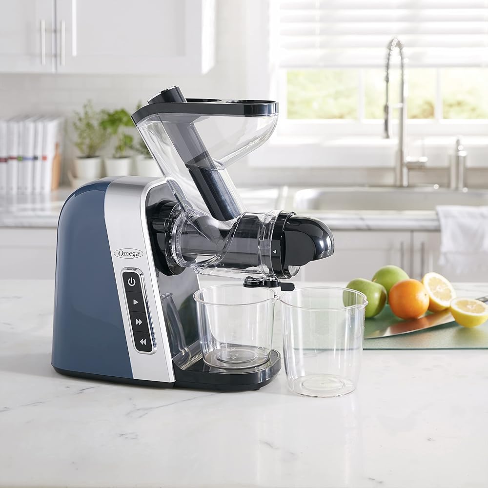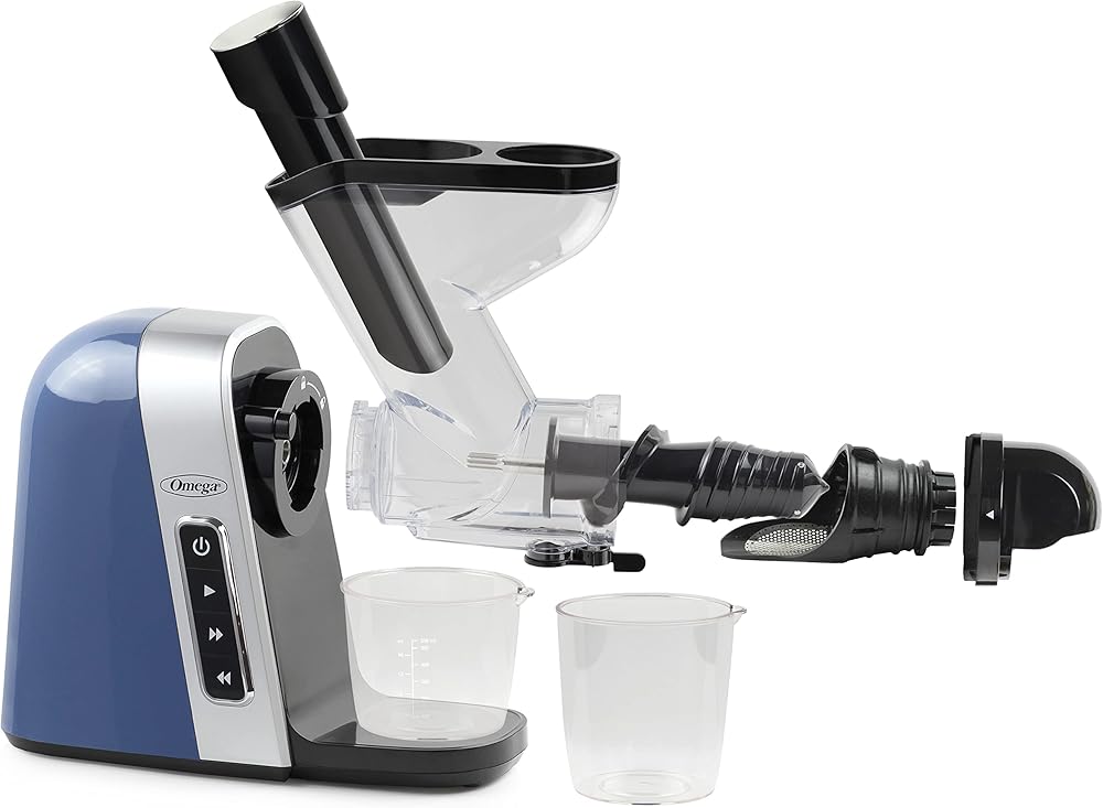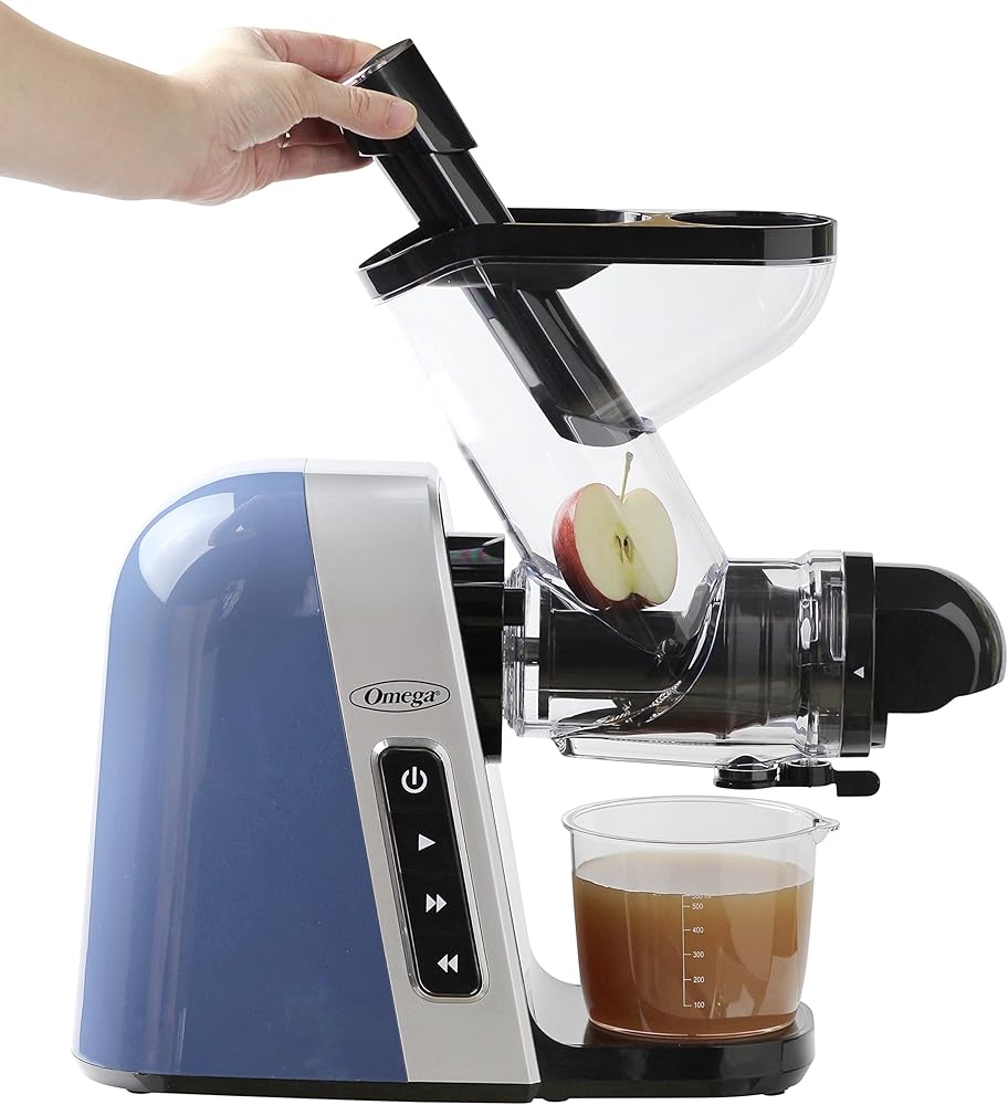 Omega Cold Press Juicer Machine, Vegetable and Fruit Juice Extractor, BPA Free, Slow Masticating High Juice Yield with Wide Mouth Chute, 200-Watt, Blue