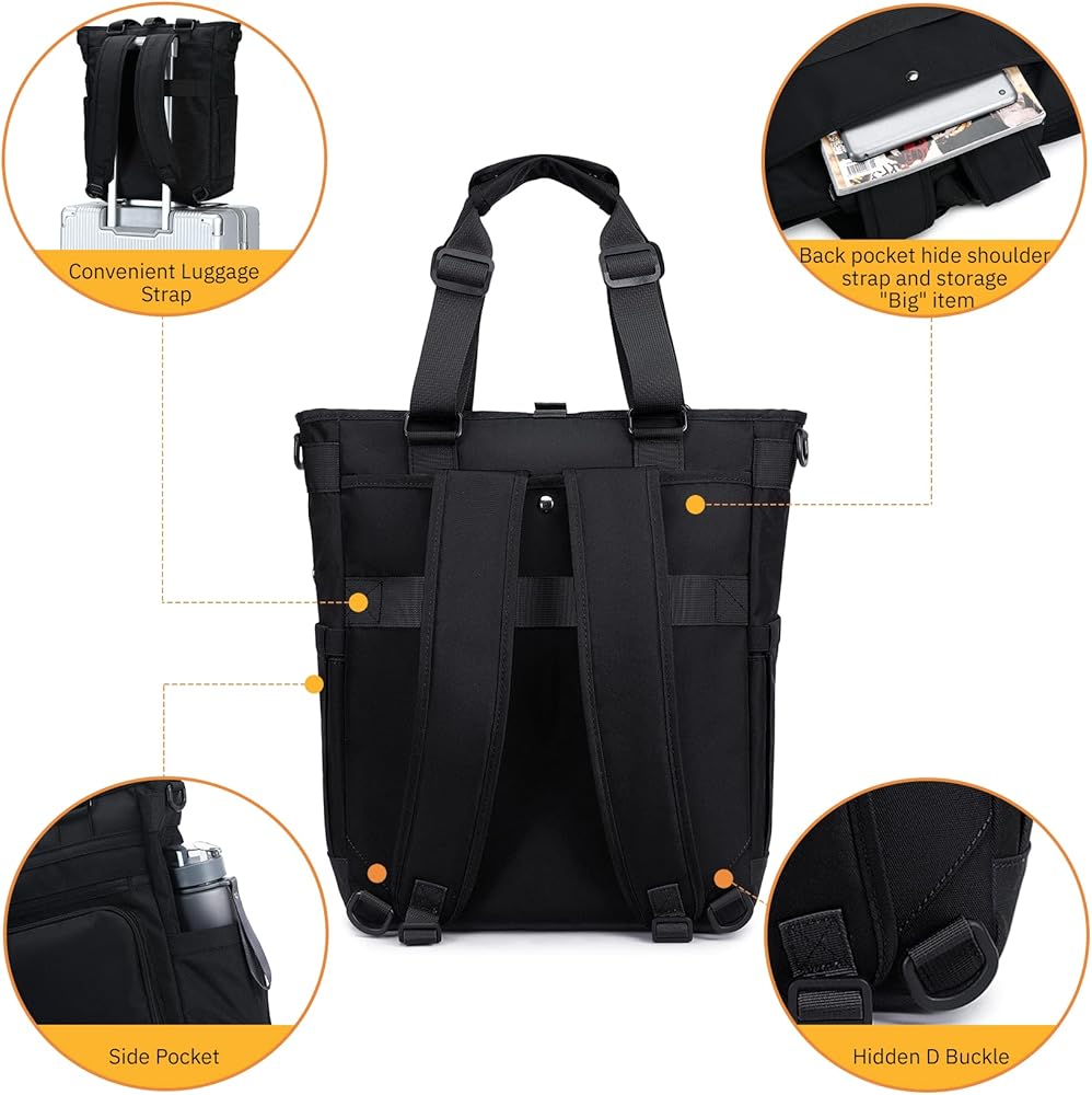 4 Ways carrying options: The backpack comes with a shoulder straps. You could use it as backpack, tote bag, shoulder bag and messenger bag, briefcase. Also the backpack straps can be hidden, when you use it a messenger bag and shoulder bag; but the tote straps can't be hidden. Why you should choose this bag: one bag pay and getting 4 bags use!