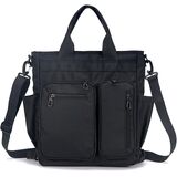 6 outside pockets, convenient to organize your items you want to carry. 1 x large front zipper pocket, 1 x large front zipper pocket with 1 x inner mesh slide pocket, 1 x large back button pocket for backpack hidden straps. 2 x side pockets for umbrella and water bottle. Just forget the pain point of finding things anywhere!