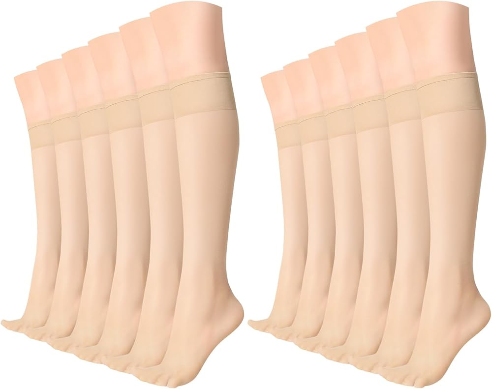 - 85%Nylon,15%Elastane,12 Pairs Natural Nude Knee High Socks,15 Denier