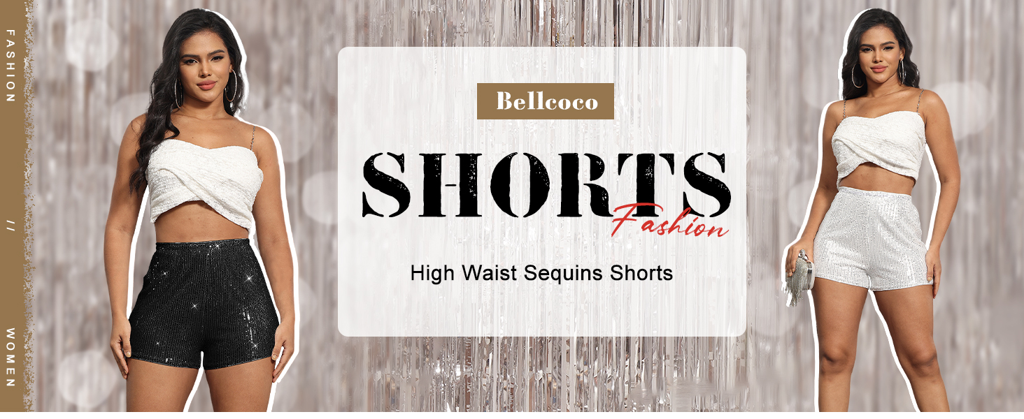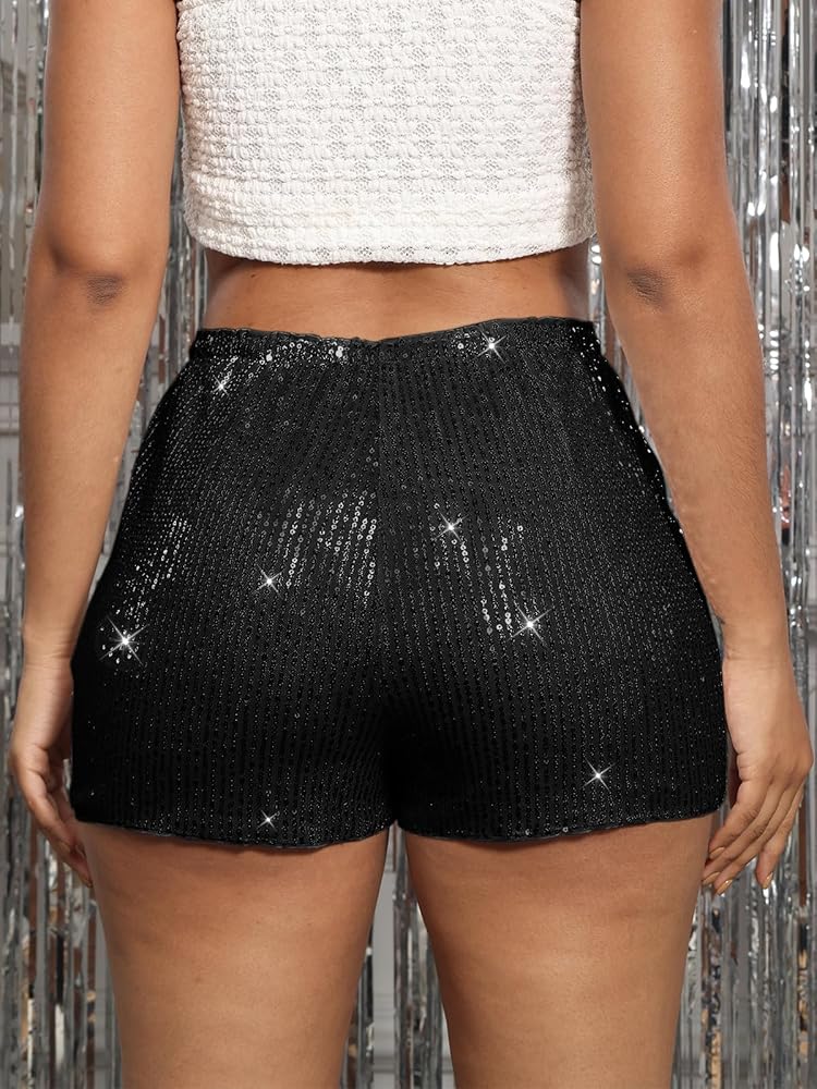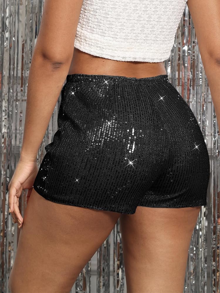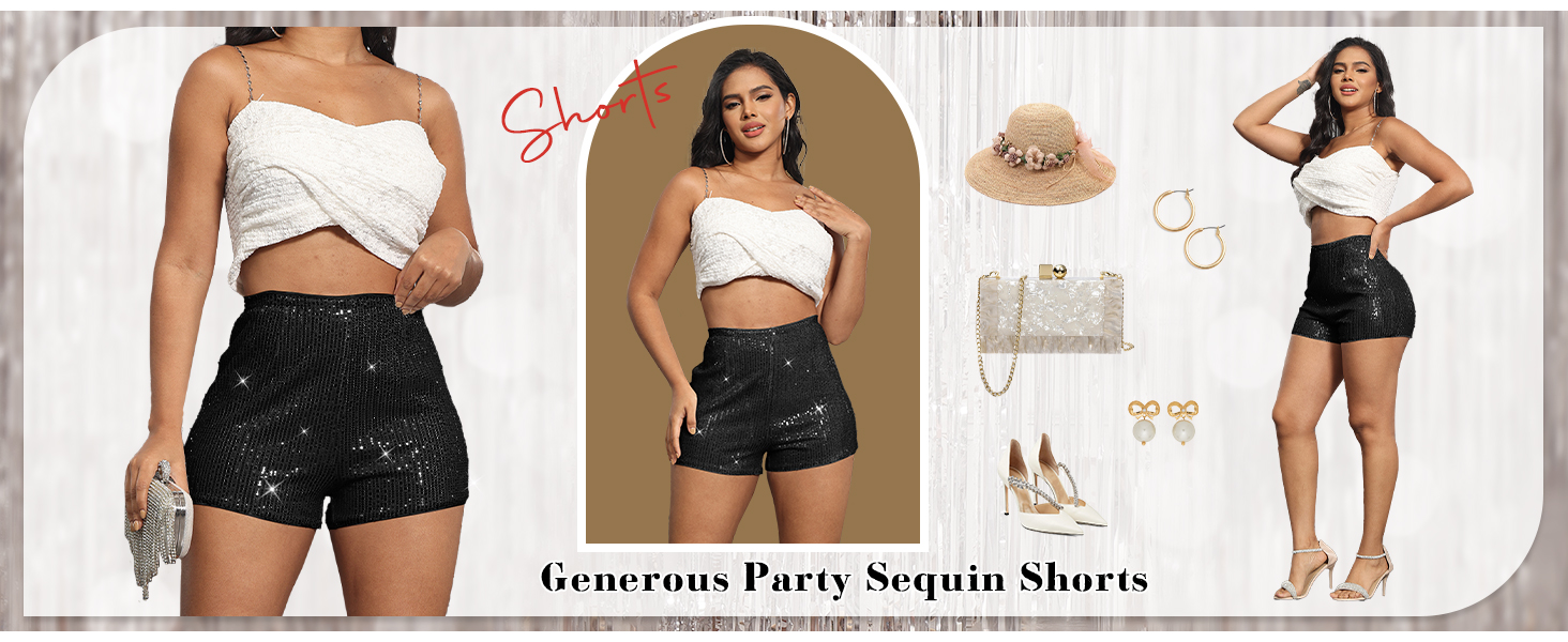【Special Materials】The outer layer is beaded 100% PET and the inner lining is made of 95% polyester and 5% spandex, ensuring the sequin shorts for women a shiny effect on the outside while the women sequined shorts are skin-friendly, soft and comfortable.