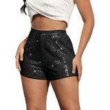 【Cool Design】Women's full sequined dance shorts feature solid color, glitter sequins, a-line straight, medium stretch, high waist, the stretchy fabric will fit your body shape and move easily. You will get tons of compliments wearing the sexy sequin booty shorts.
