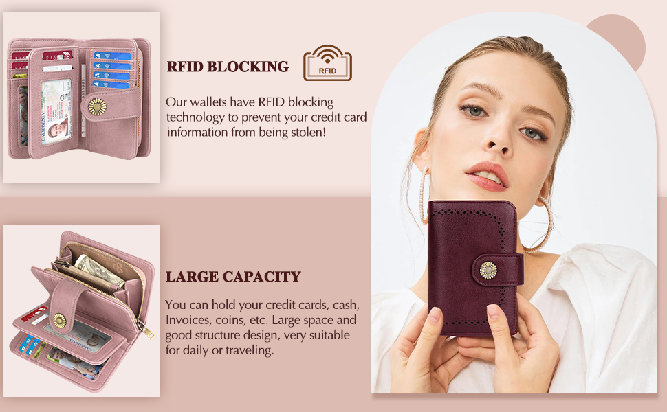 👑【RFID BLOCKING WALLET】: Our wallet for women is equipped with advanced RFID blocking technology, which prevents your credit card and ID information from being scanned by others who steal it, providing security for your property information.