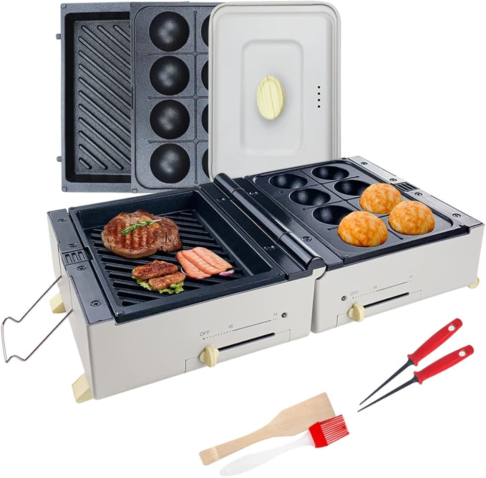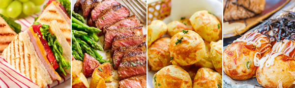 PERFECT BREAKFAST :This electric contact Grill could be used to make takoyakis, sausages sandwiches, eggs, steak, bacon, french toast and more! It is the best assistant for cooking breakfast.
