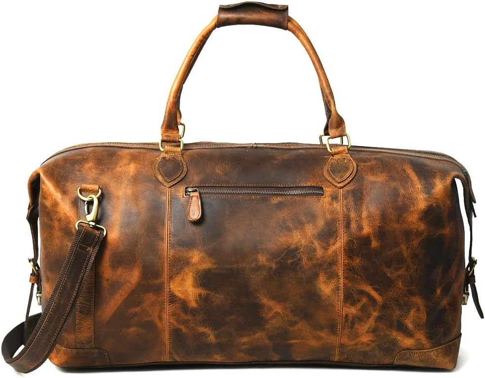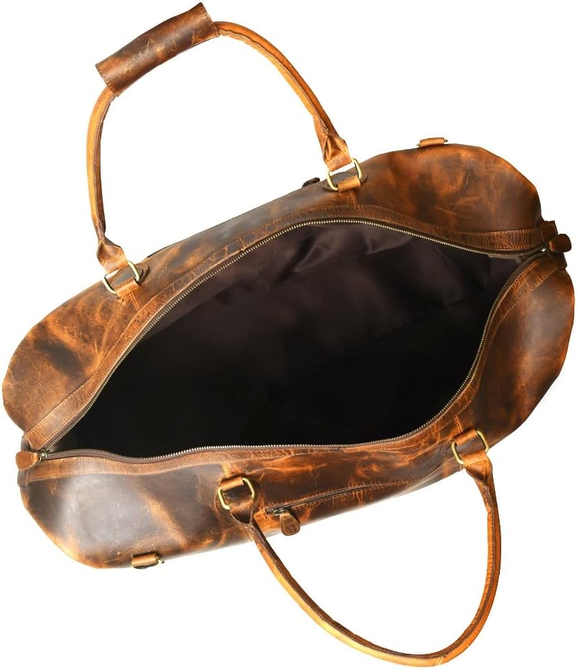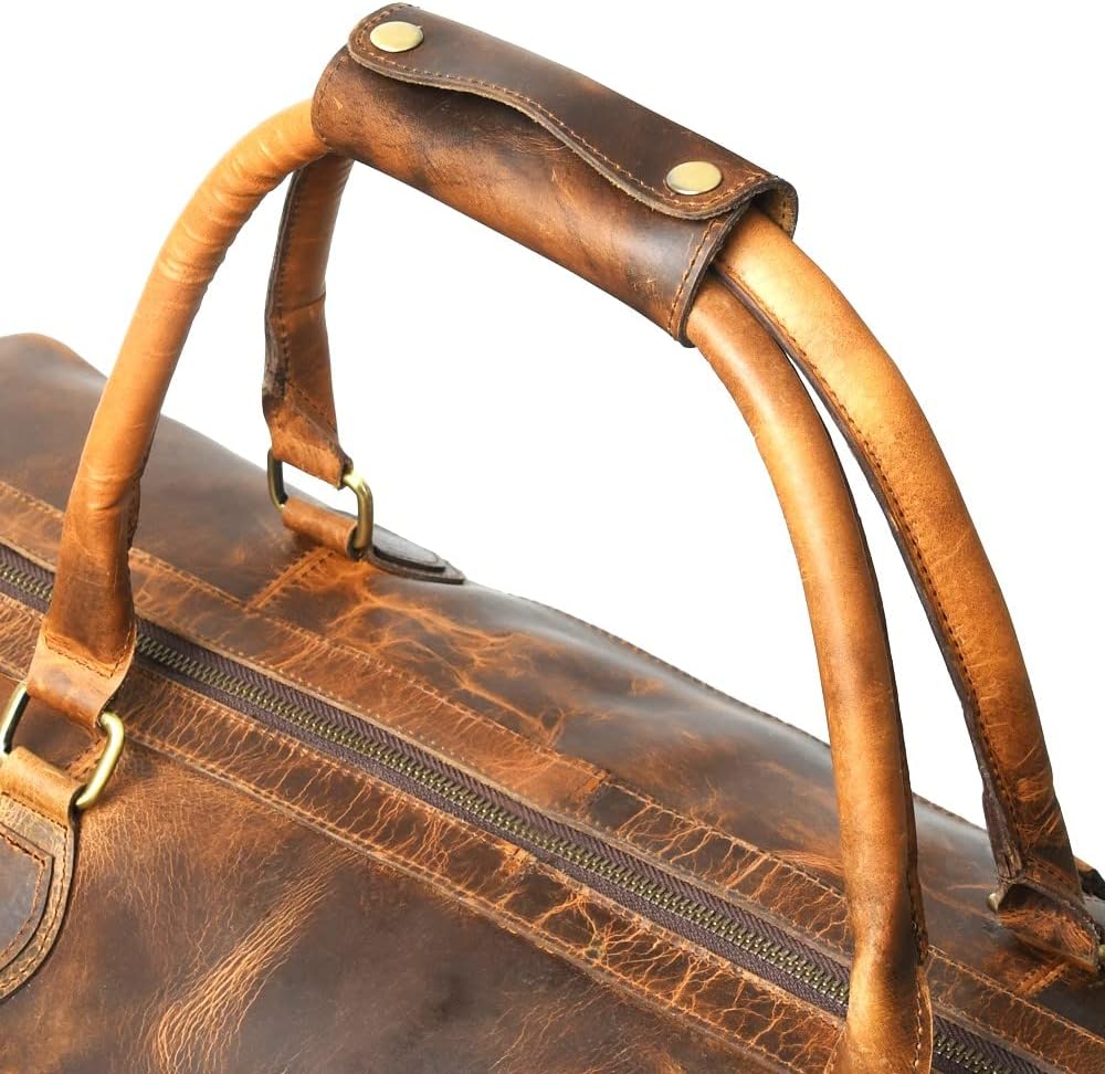 Buffalo Leather Duffle Bag 24 Inch | Genuine Leather Travel Overnight Bag for Men & Women | Carry On Mens Duffel Bag for Gym Sport | Classic Style Vintage Full Grain Weekend Luggage Duffel Bag