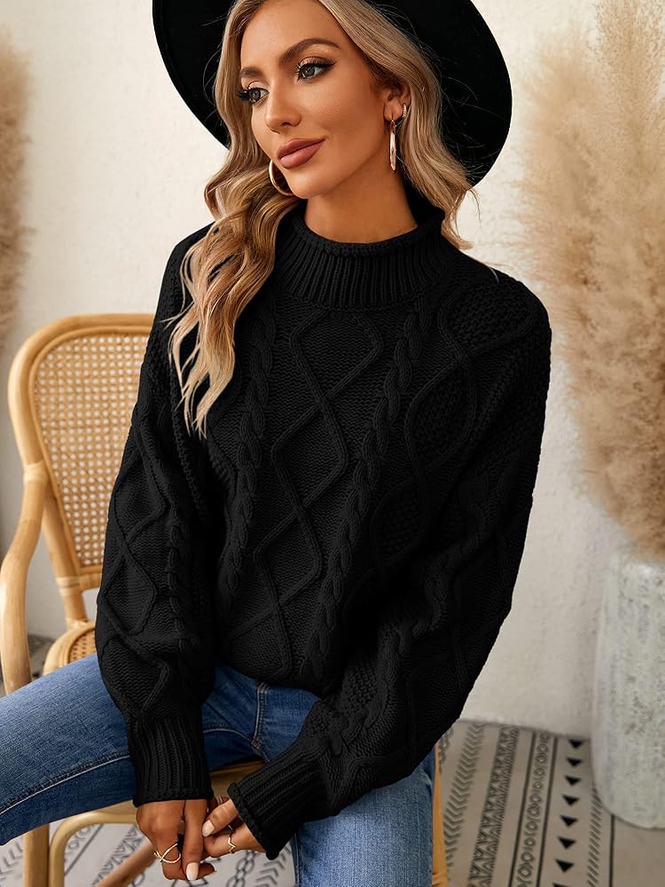 【Unique Designs】This Oversized knitted pullover features turtleneck/cowl neck, oversized baggy style, hip Length, pull on closure, batwing long sleeve, dropped shoulders, cable knit tops, solid plain color knitted blouse.