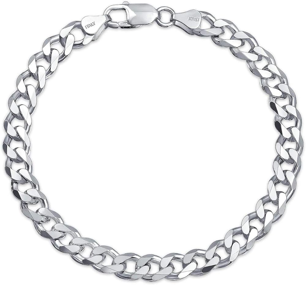 Italian 925 Sterling Silver Heavyweight Curb Cuban Necklace For Men, Thick Heavy Necklaces In Solid Sterling Silver, Mens Link Chain and Bracelet 6.75MM -9MM