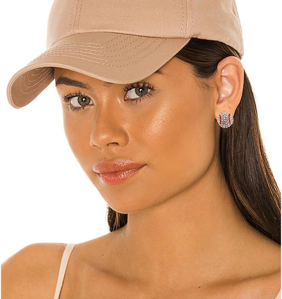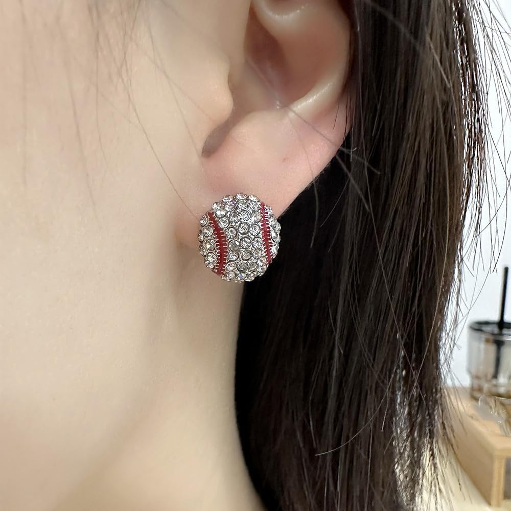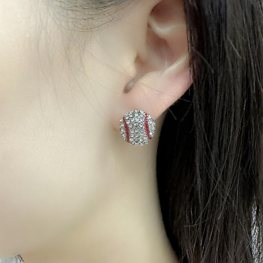 CZ Sport Ball Stud Earrings for Women Girls Silver Plated Cubic Zirconia Crystal Soccer Volleyball Softball Basketball Baseball American Football Ball Earring Game Match Team Player Fan Gifts Souvenirs