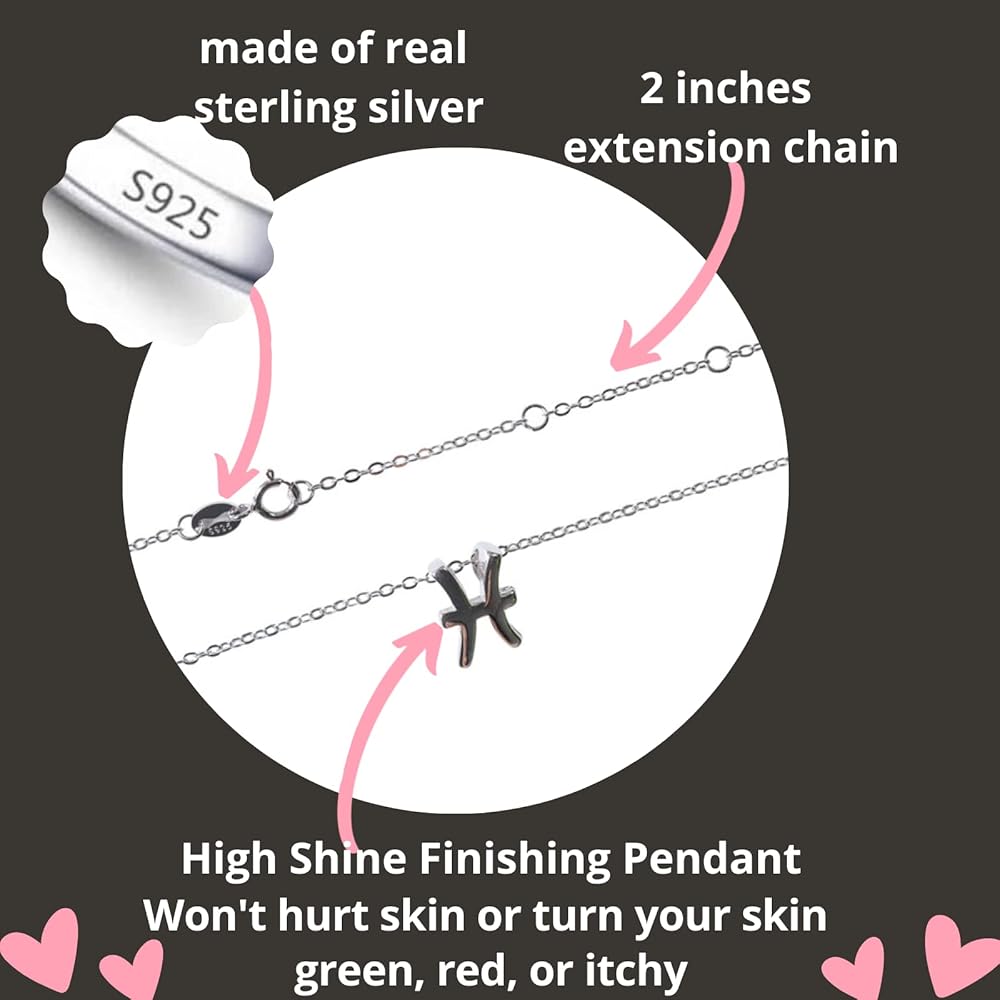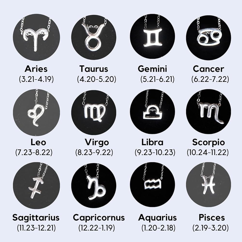 Coco Jewelry 925 Sterling Silver CZ Astrology 12 Constellation Horoscope Sign Astrology Zodiac Star Necklace Birthday Gifts for Women Girls,18-20 inch