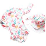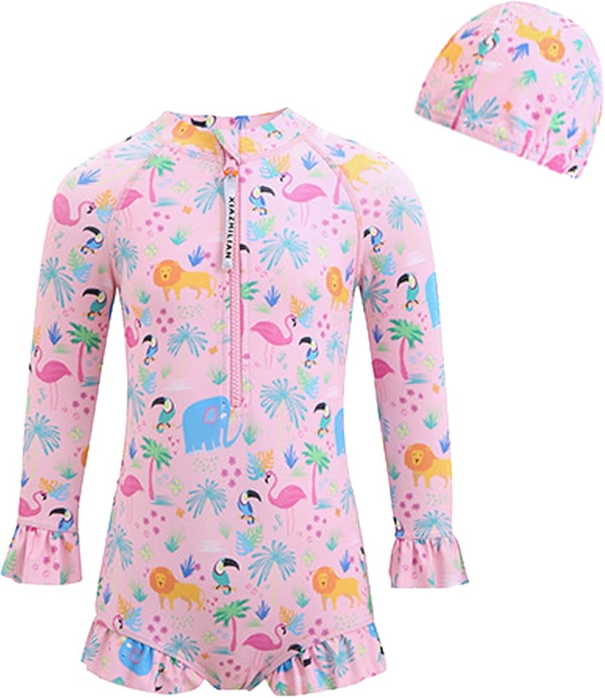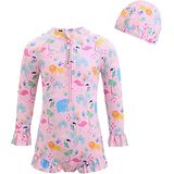Swimsuit Features - This adorable swimsuit features a long sleeve, one-piece design tailored for baby girls. The contrasting colors and charming patterns on the front and back add an extra touch of cuteness. The convenient crew neck and front zipper make it easy to put on and take off.