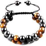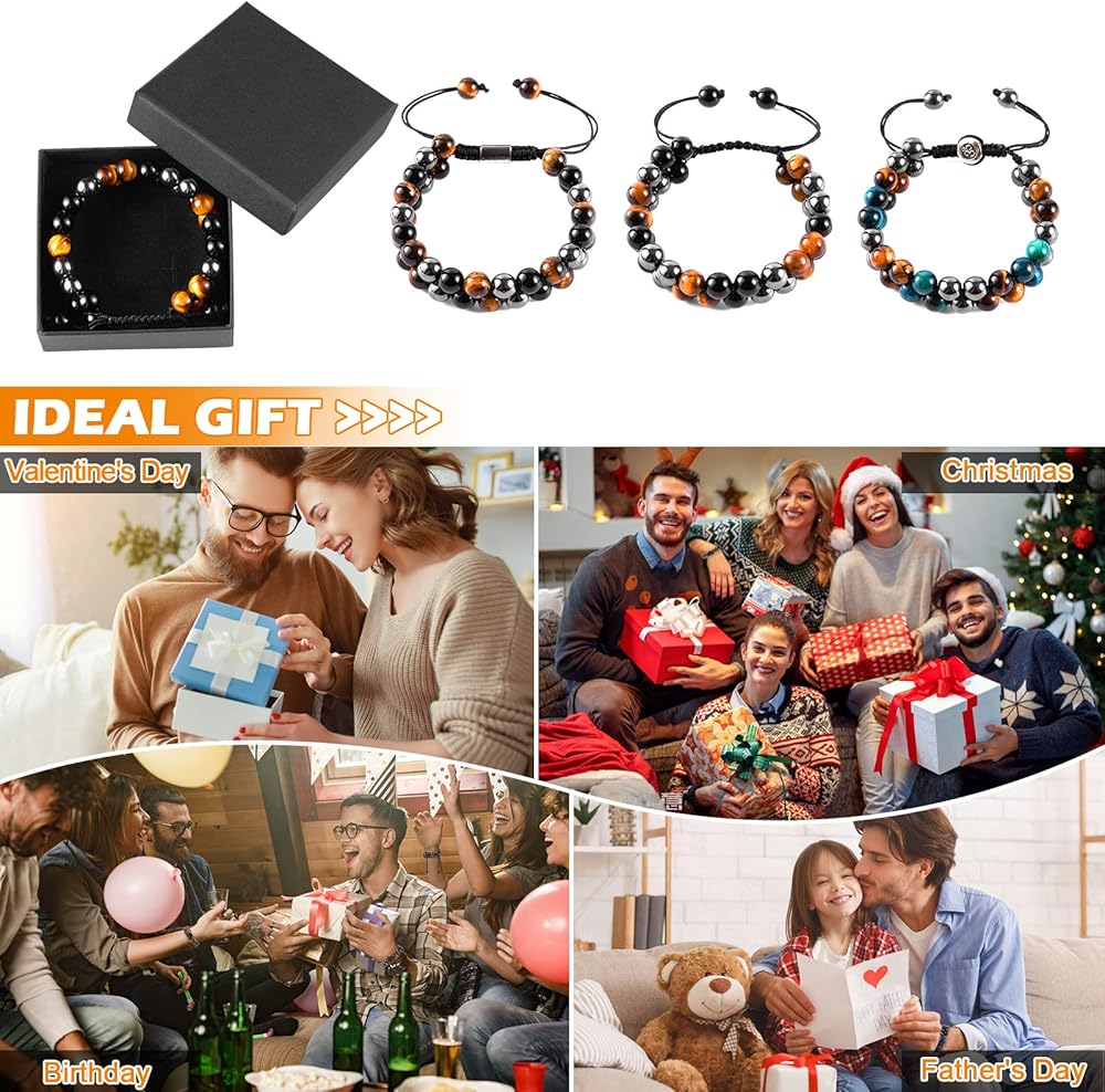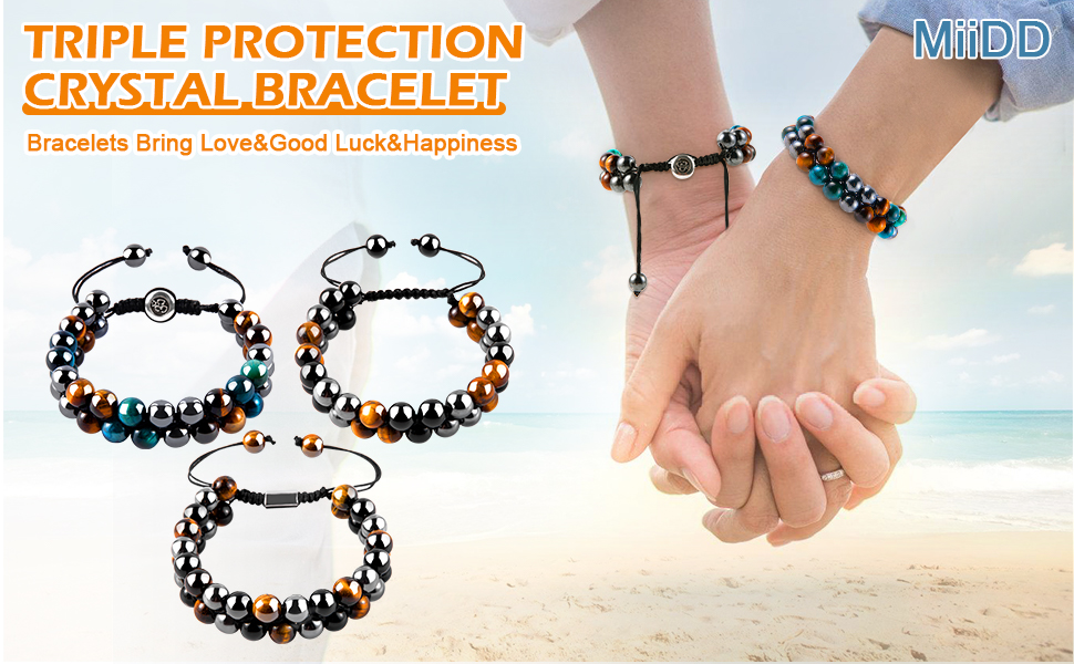 ▶【Premium Material of Bracelets】The Triple Protection mens bracelet made of superior natural tiger's Eye,Black obsidian and hematite,giving you protection, healing your emotion,The Triple Protection Bracelet associate in one piece the most protective stones,tiger eye and black obsidian and hematite, and wave handmade braided these triple healing stone beads together,bringing bring Luck and Prosperity and Happiness.