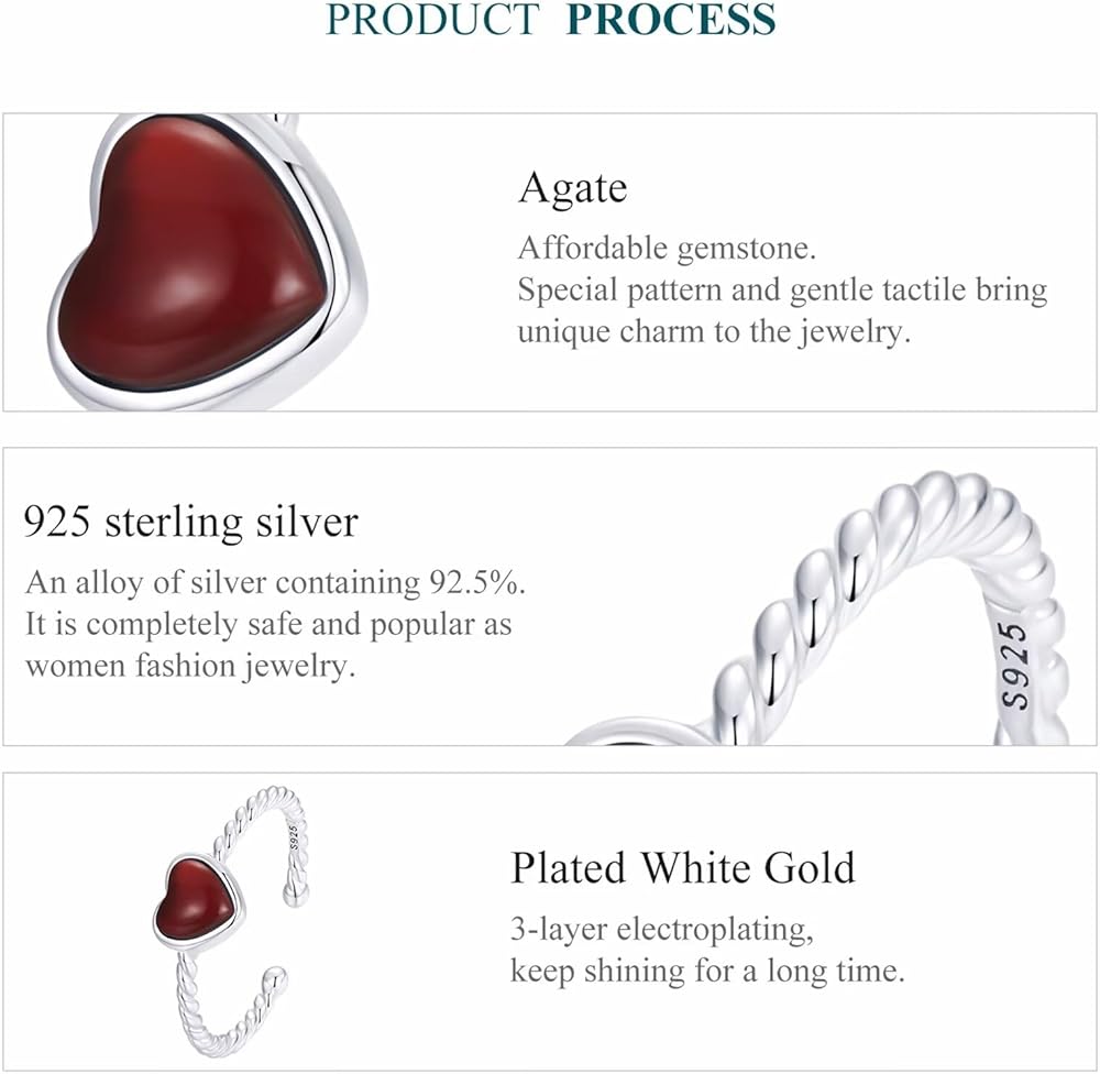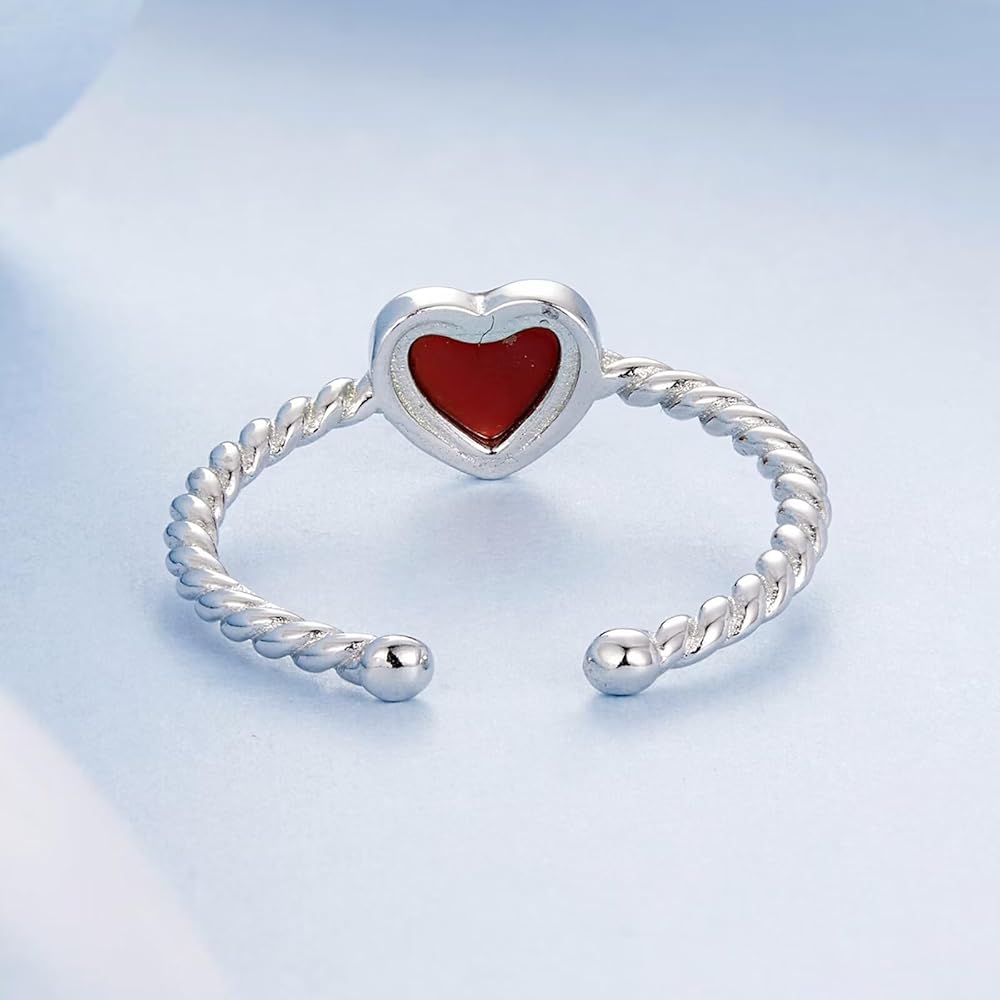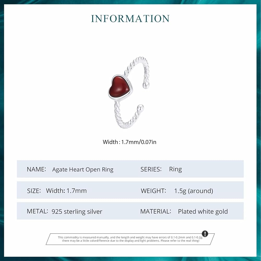 💖 925 Sterling Silver Open Ring Material 💖 The dainty heart open ring was made of 925 sterling silver and 5A zirconia, stamped with S925. 925 silver nickel-free and hypoallergenic, protect your sensitive skin. Cubic zirconia is a synthetic gemstone that is similar to a diamond with its crystal clarity and brilliance. This sparkle love heart ring will show your elgance,beauty and charm.