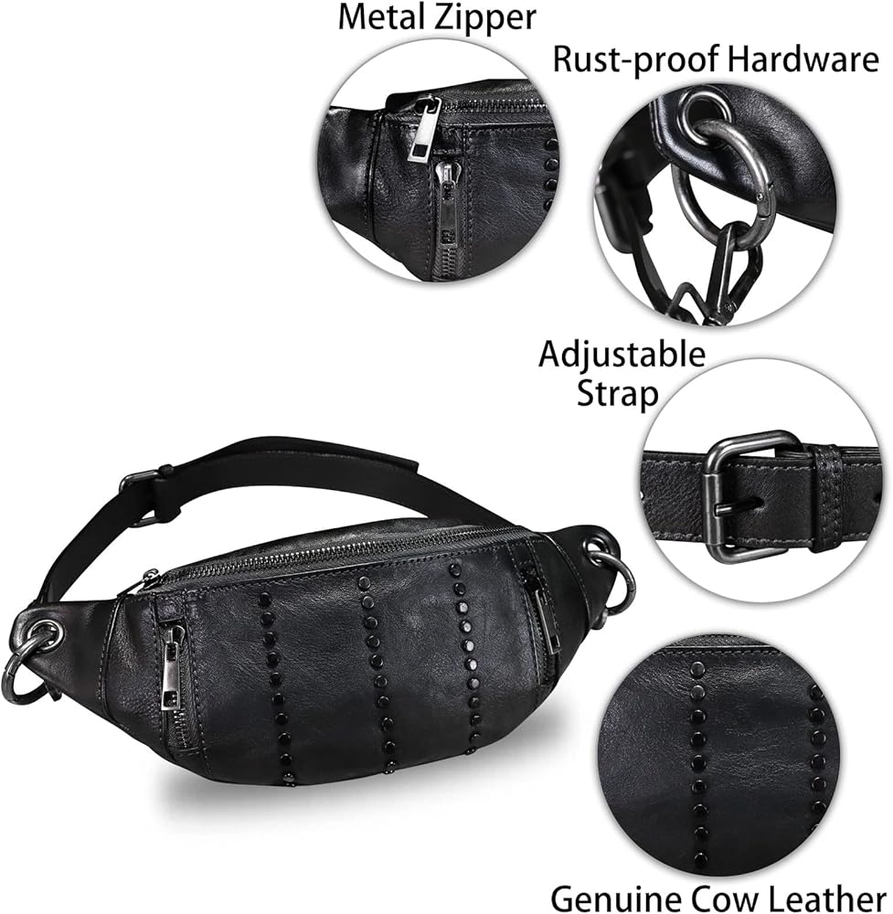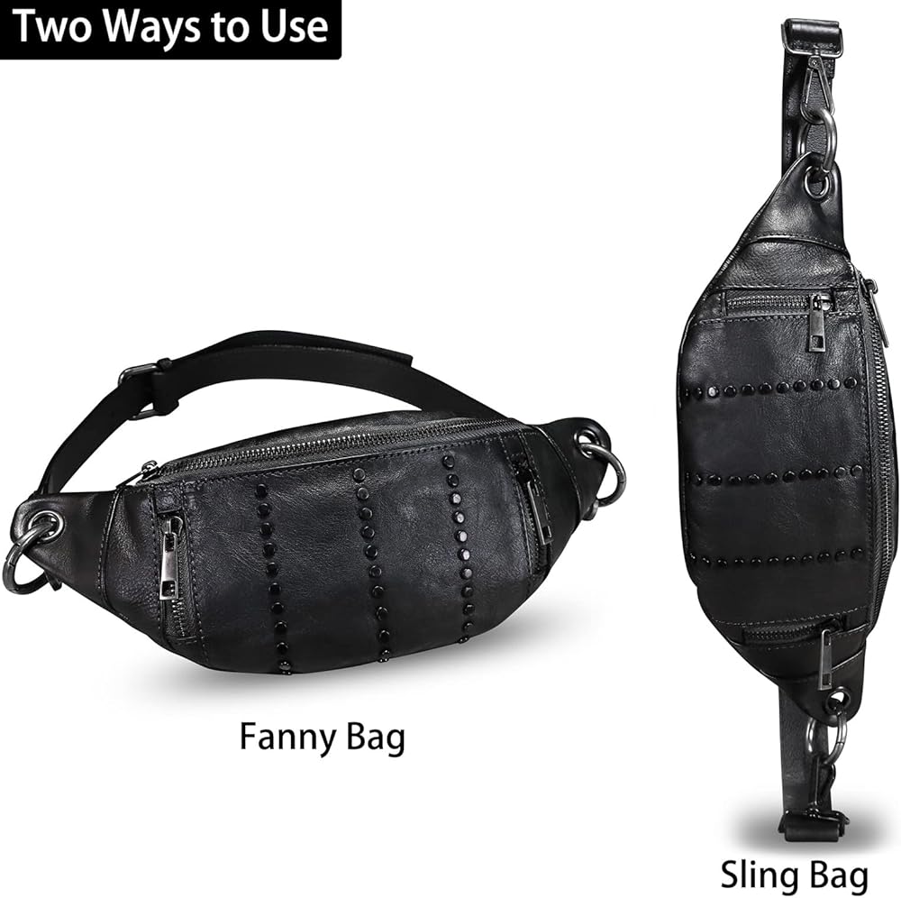 Genuine Leather Fanny Pack for Women - Vintage Real Leather Waist Bag - Fashion Hip Bag - Crossbody Purse