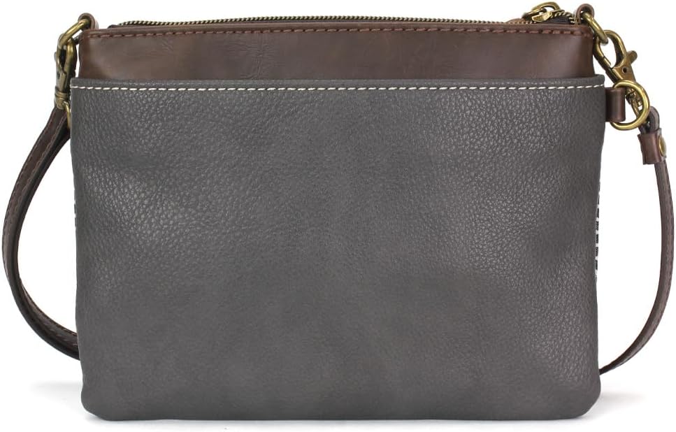 Front zipper pocket with Chickadee Chala Pal Detailed stitching and decorative zipper pull Rear slide pocket 3 credit card slots inside 2 Adjustable straps that are detachable Top zippered pocket Patterned fabric lining with inner slide and zipper pockets. Materials: Faux Leather Color: Blue