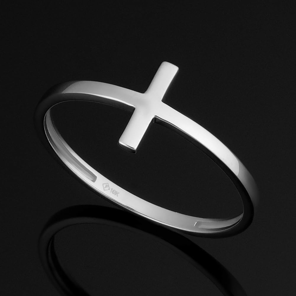 This beautiful cross ring for women is also available in white or rose gold; choose one or get all three to mix and match with everyday styles