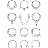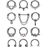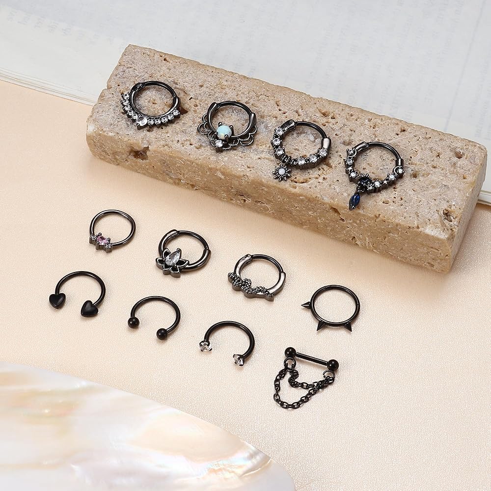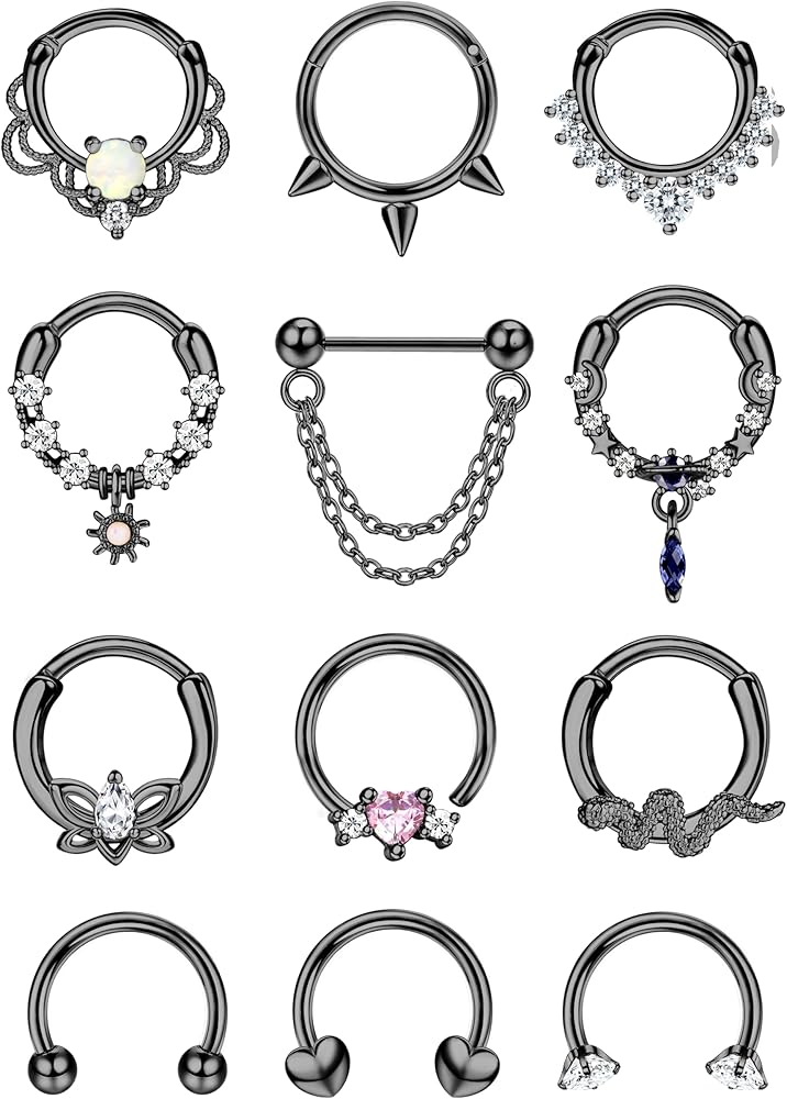 โฆ๐ญ๐ฎ๐ฃ๐ฐ๐ ๐ฆ๐ฒ๐ฝ๐๐๐บ ๐ฅ๐ถ๐ป๐ด๐โฆOne order includes 12pcs septum rings of various styles:butterfly horseshoe septum ring,blue plane dangle septum ring,opal hinged nose ring,chain nose ring hoop,etc. Different styles of septum meet your different matching needs.